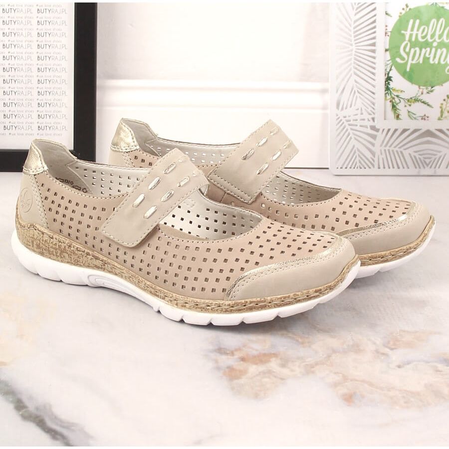 Detalhes: Sapatos femininos de couro de verão com velcro bege Rieker N4257-60