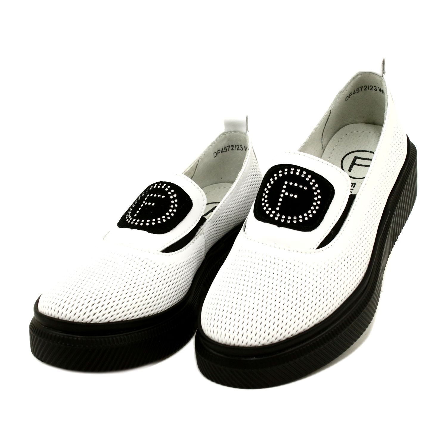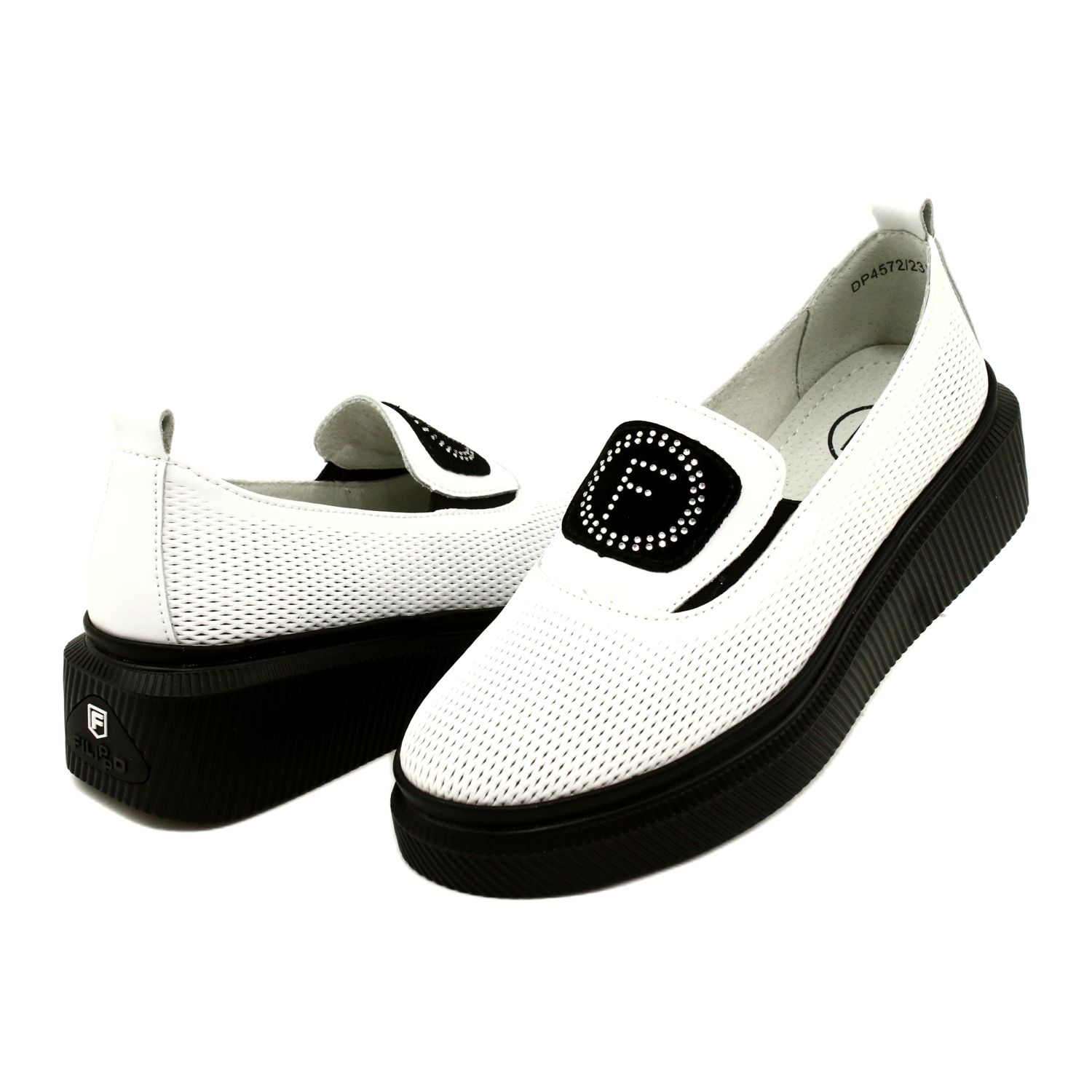 Apresentamos os Sapatos Femininos em Couro Branco Elegante DP4572/23 WH da marca Filippo - a escolha ideal para mulheres que valorizam conforto e elegância. Estes sapatos slip-on distinguem-se não só pelo seu design moderno, mas também pela sua funcionalidade. Graças às inserções de borracha, calçá-los é extremamente fácil e ao mesmo tempo tornam-se mais flexíveis, o que permite ajustá-los a qualquer altura do pé e do peito do pé.