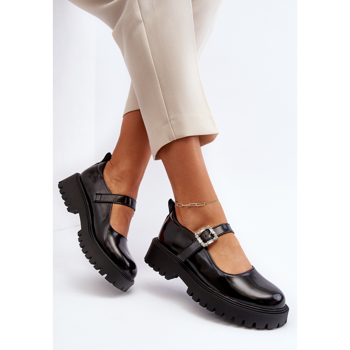 - Modelo: Sapatos de couro envernizado com fivela decorativa