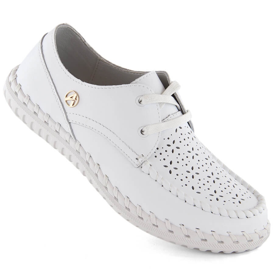 ARTIKER Sapatos femininos de couro, mocassins com cordões, brancos Artiker 54C-1520