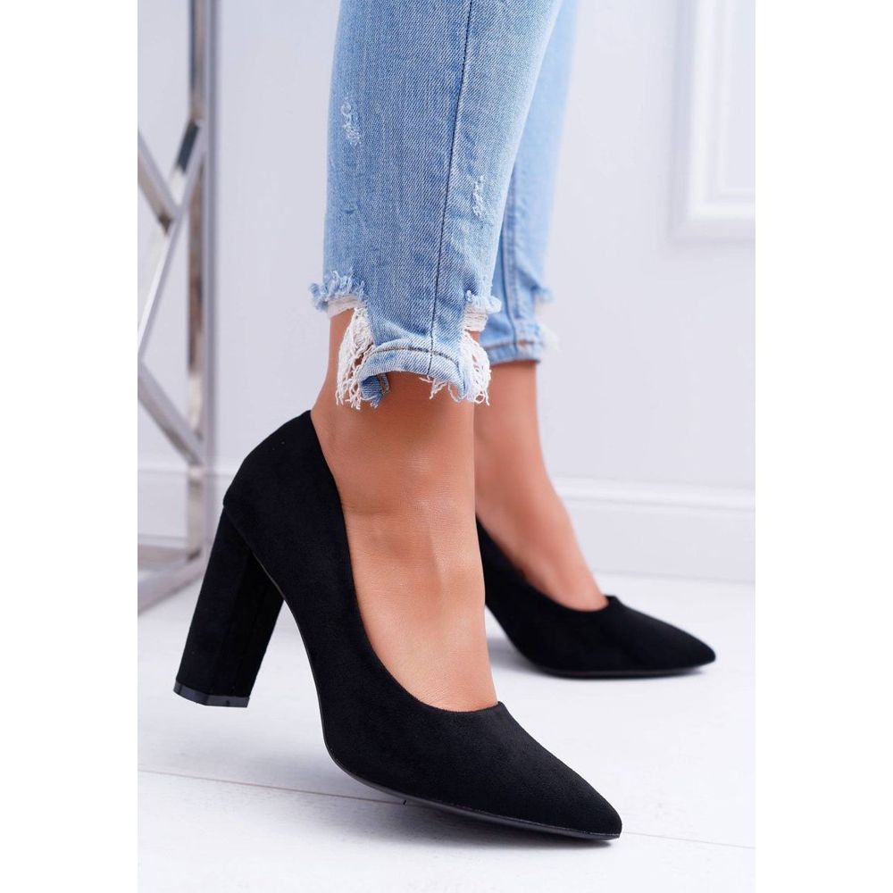 Os scarpins estão disponíveis na clássica cor preta, o que os torna adequados para muitos looks. Também vale a pena prestar atenção ao seu design único - os dedos pontiagudos conferem-lhes uma expressão elegante e o material exterior em camurça acrescenta elegância.