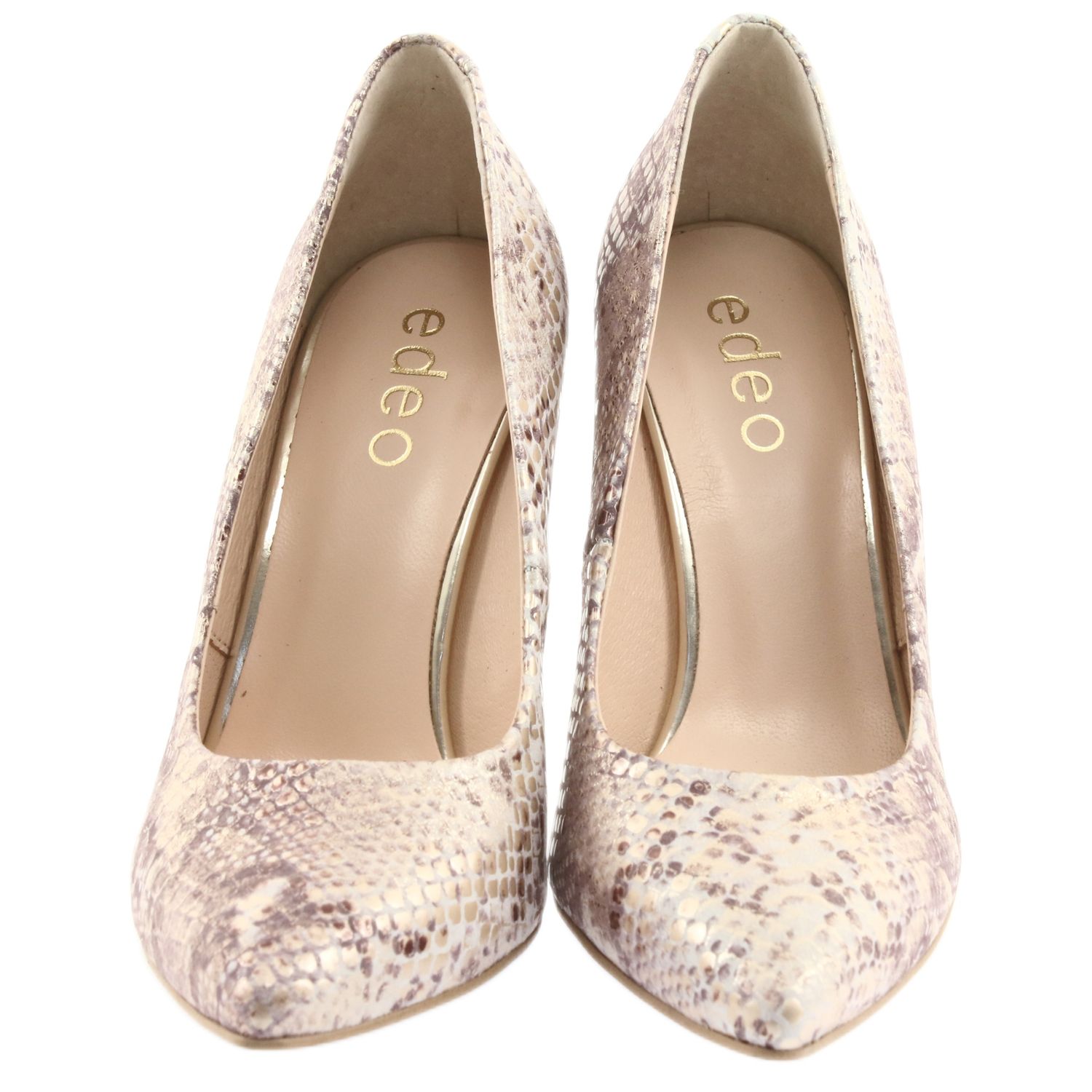 Os sapatos femininos Edeo 3313 são a escolha perfeita para mulheres que valorizam elegância e conforto. Feitos de couro natural em um moderno padrão de cobra em tons de bege e dourado, eles têm um visual extremamente estiloso, acrescentando elegância a qualquer estilo.