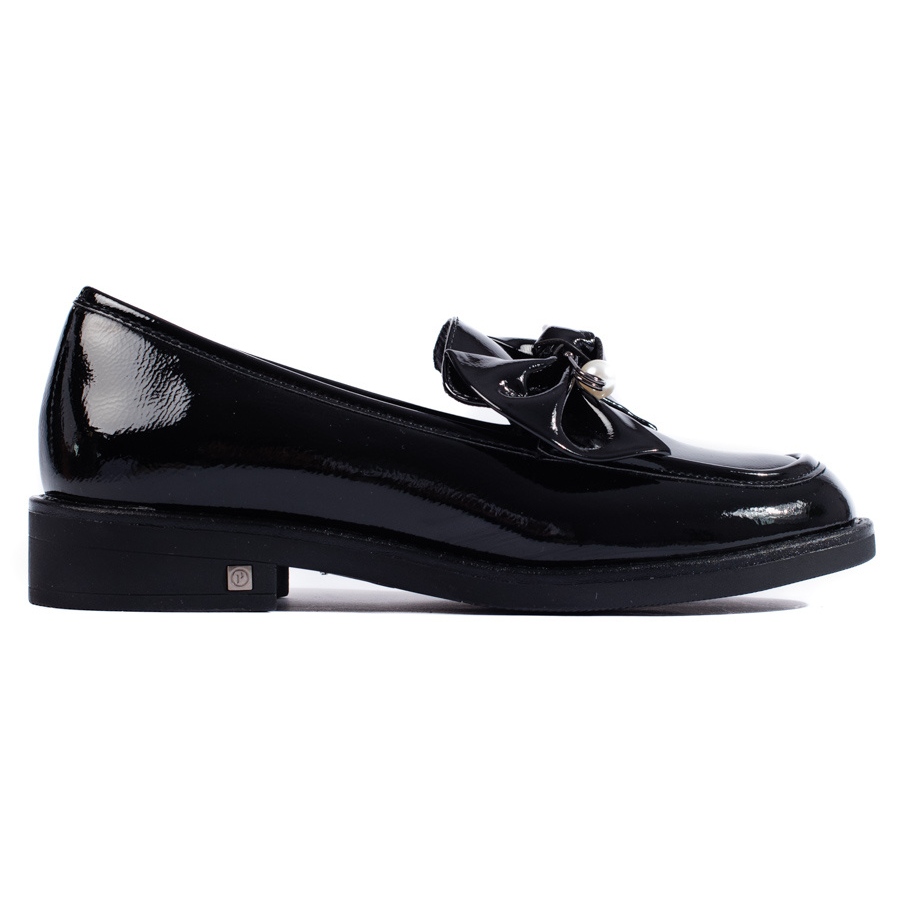 Apresentamos elegantes sapatos femininos de couro envernizado com laço do fabricante W. Potocki. Estes elegantes sapatos pretos combinam perfeitamente com as últimas tendências e são o elemento perfeito do guarda-roupa de qualquer mulher. Feitos de couro ecológico de alta qualidade, eles não são apenas atraentes na aparência, mas também duráveis.