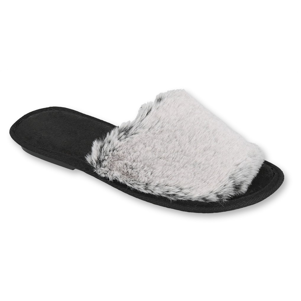 A altura superior é baixa, o que os torna a escolha perfeita para usar em casa. O fecho deslizante permite uma colocação rápida e conveniente dos sapatos, e a falta de decorações adicionais torna estes chinelos universais e adequados para muitos estilos.