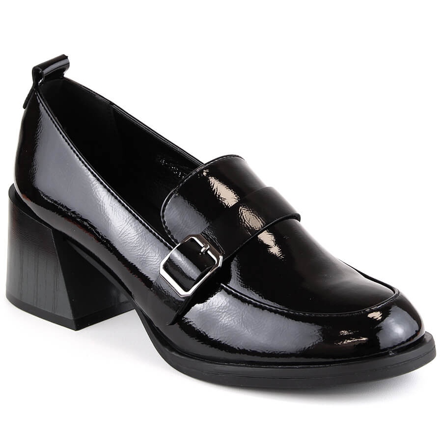 Vinceza Sapatos femininos lacados pretos com salto decorativo Vinceza 58173