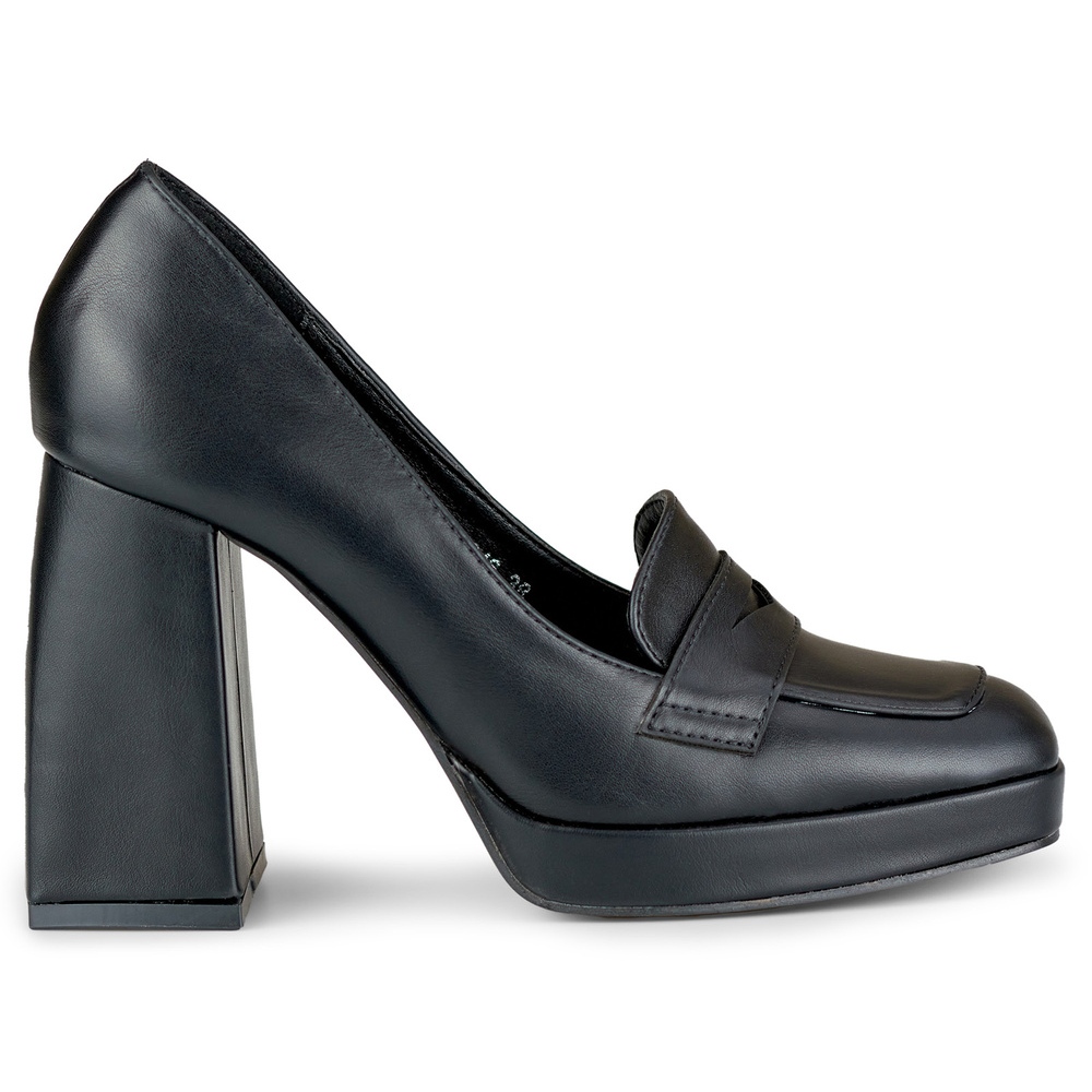 As bombas M046B femininas em uma cor preta elegante são obrigatórias em todas as guarda-roupas. Seu salto maciço no estilo de um bloco de 10 cm de altura não apenas adiciona alguns centímetros de altura, mas também garante estabilidade e conforto ao usar. Feito de couro orgânico de alta qualidade, as bombas combinam o design moderno com preocupação com o meio ambiente.