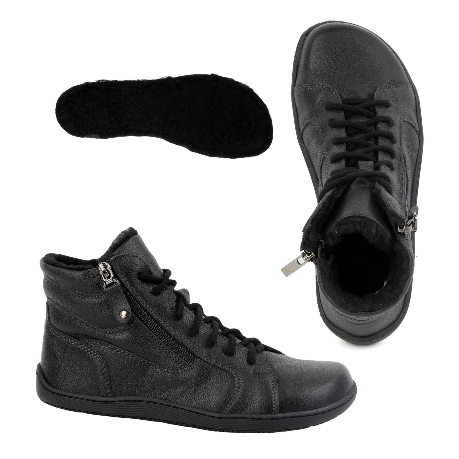 Sapatos minimalistas de couro minimalista das mulheres de Olivier 1261 em preto é uma ótima opção para mulheres que desejam combinar o conforto, o estilo e a saúde dos pés. Esses sapatos inovadores de inverno foram projetados de uma maneira que imita a caminhada natural descalça, fornecendo a proteção e o calor necessários nos dias mais frios.