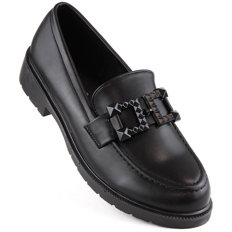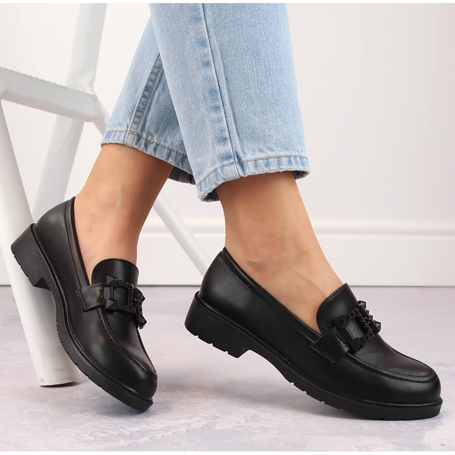 Detalhes: Sapatos femininos, mocassins slip-on com decoração, pretos S.Barski HY371