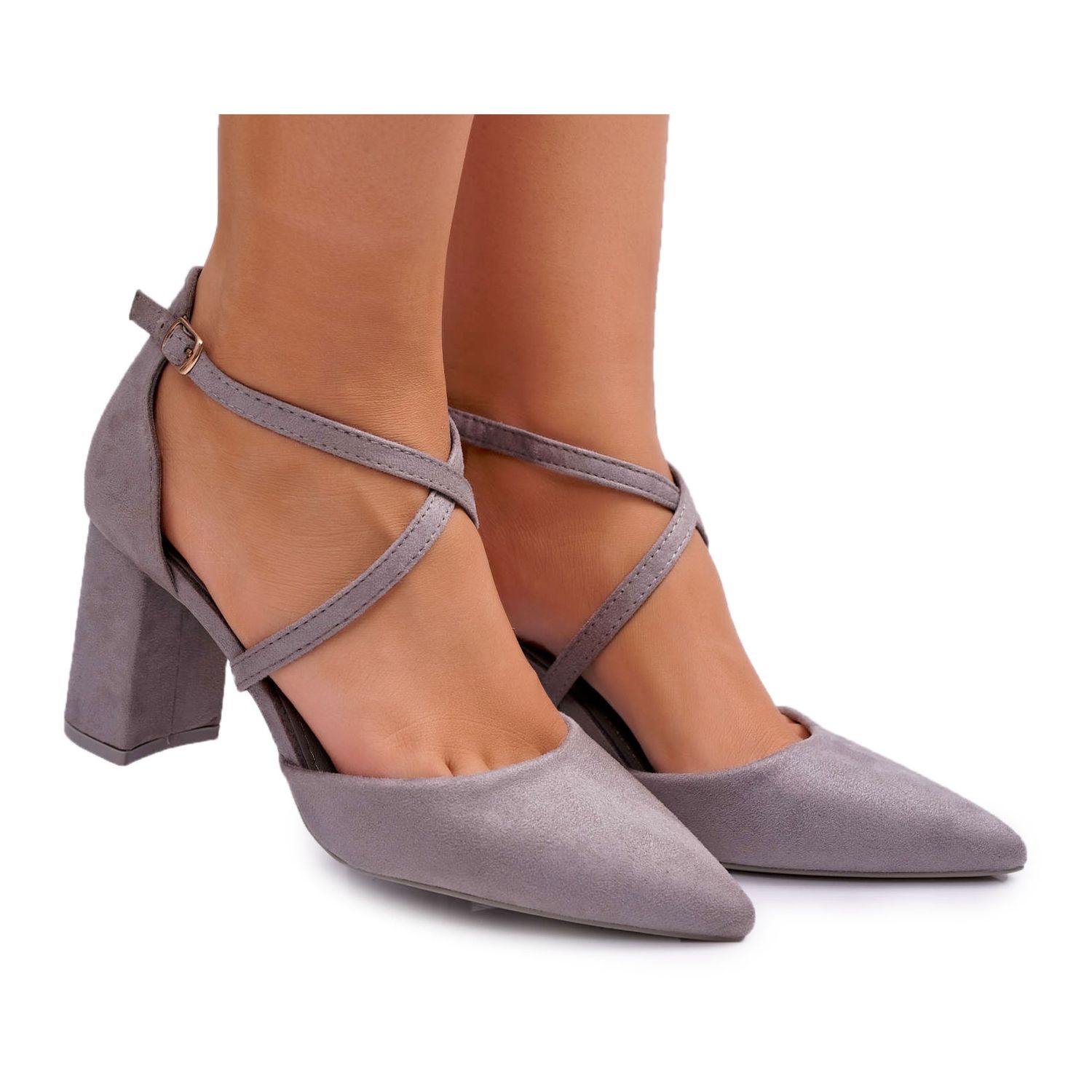 As bombas femininas no pilar no Spitz - cinza, camurça, com um corte atemporal, que completará uma estilização elegante para o escritório e para saídas solenes. O modelo incorporado em um pilar estável de 8 cm molda perfeitamente a silhueta, e a inserção de conforto suave oferece conforto ao longo do dia. Feito de couro ecológico de camurça, terminado com uma inserção ecológica - estilo e preocupação com o conforto andam de mãos dadas.