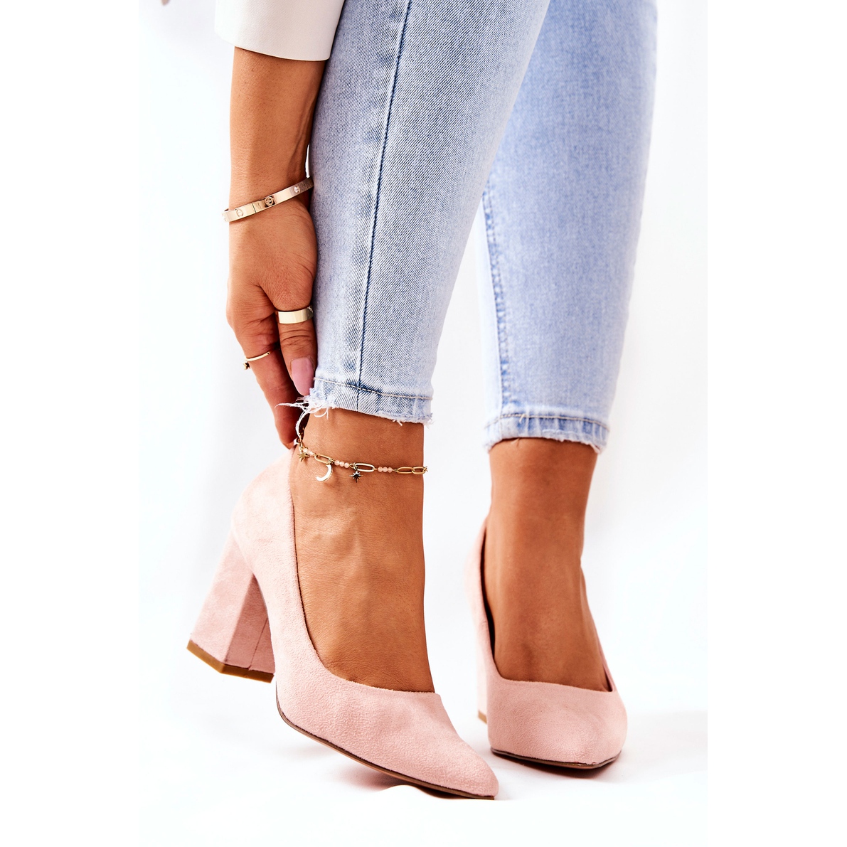 Um poste estável de 9 cm de altura não só alonga opticamente as pernas, mas também garante conforto de uso ao longo do dia. Uma delicada palmilha confeccionada em couro ecológico cuida dos pés, eliminando o desconforto associado ao uso prolongado do calçado. Além disso, o método de compra oculto no formulário slip-on torna sua colocação rápida e conveniente.