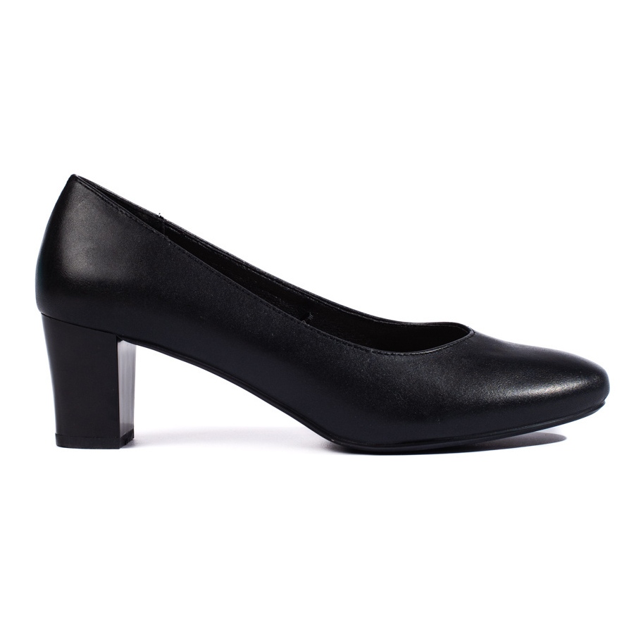 O interior das bombas foi finalizado com a pele natural, o que garante o máximo conforto e ventilação, e a sola de plástico oferece excelente aderência. Essas bombas elegantes correspondem a muitos estilos - de casual a mais formal, o que os torna um elemento universal de roupas.
