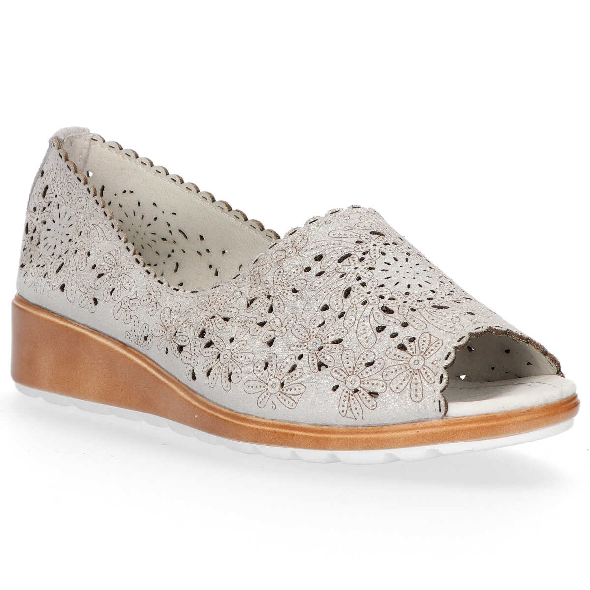 O modelo DP1399/20 caracteriza-se por um design interessante que chama a atenção com detalhes vazados. Têm bico redondo e confortável cunha de 3,5 cm de altura, o que os torna a escolha perfeita tanto para o trabalho como para passeios de fim de semana. Um sotaque feminino na forma de uma plataforma de 1 cm adiciona sutileza e garante estabilidade.