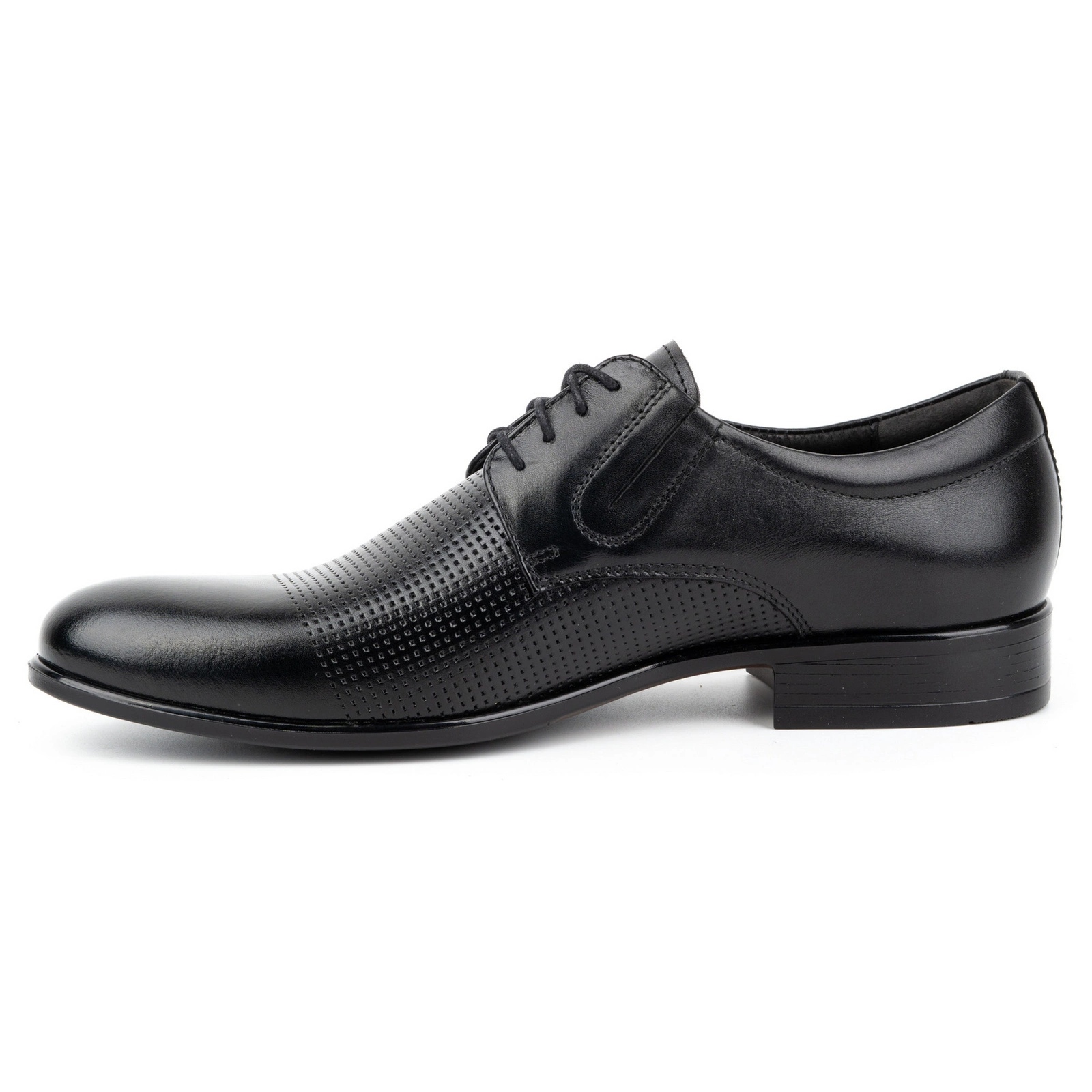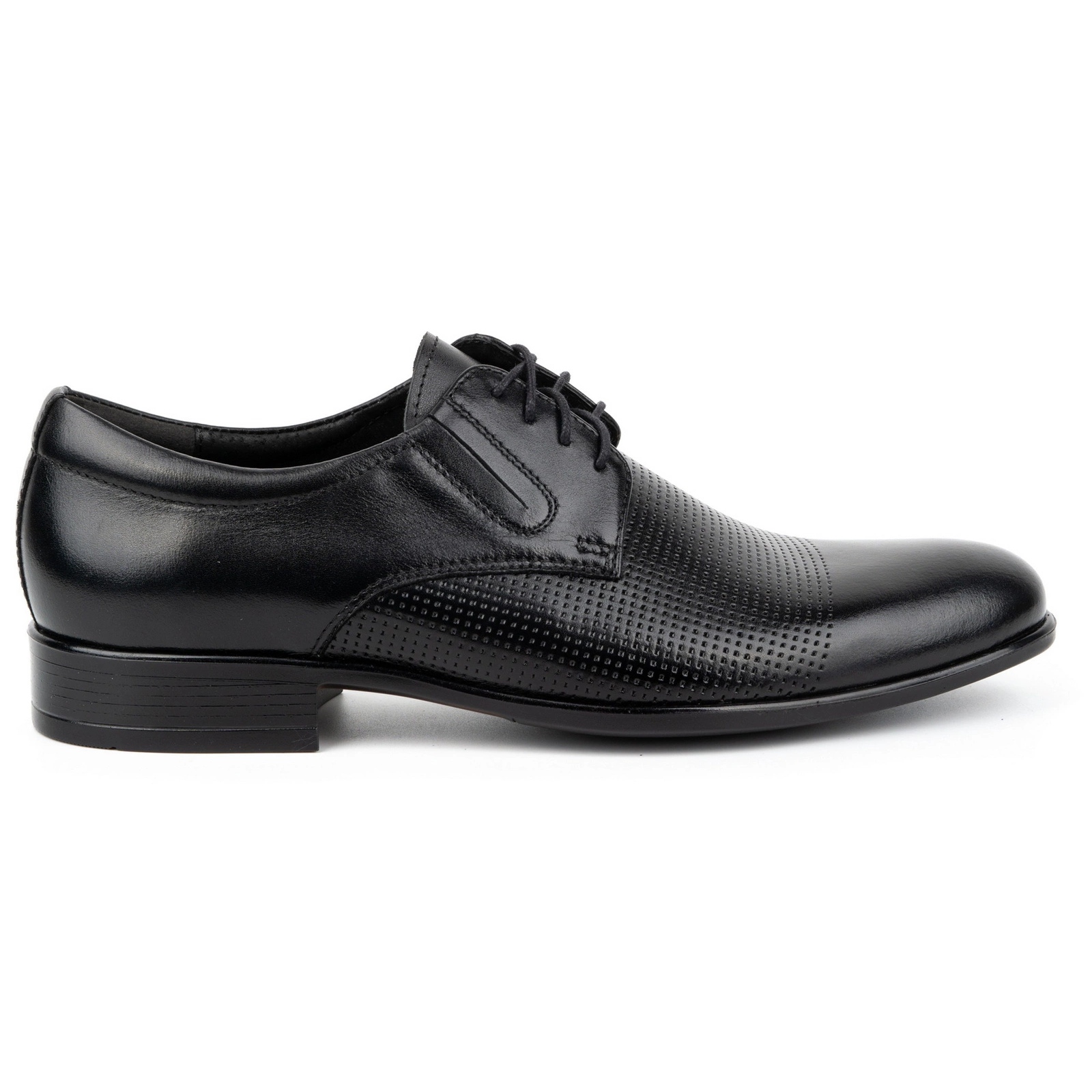 Um design simples e de padrões e nariz redondo tornam o modelo de 324kam universal - ele combina bem com um terno, calças elegantes ou camisa. A cor preta enfatiza a natureza formal dos calçados.