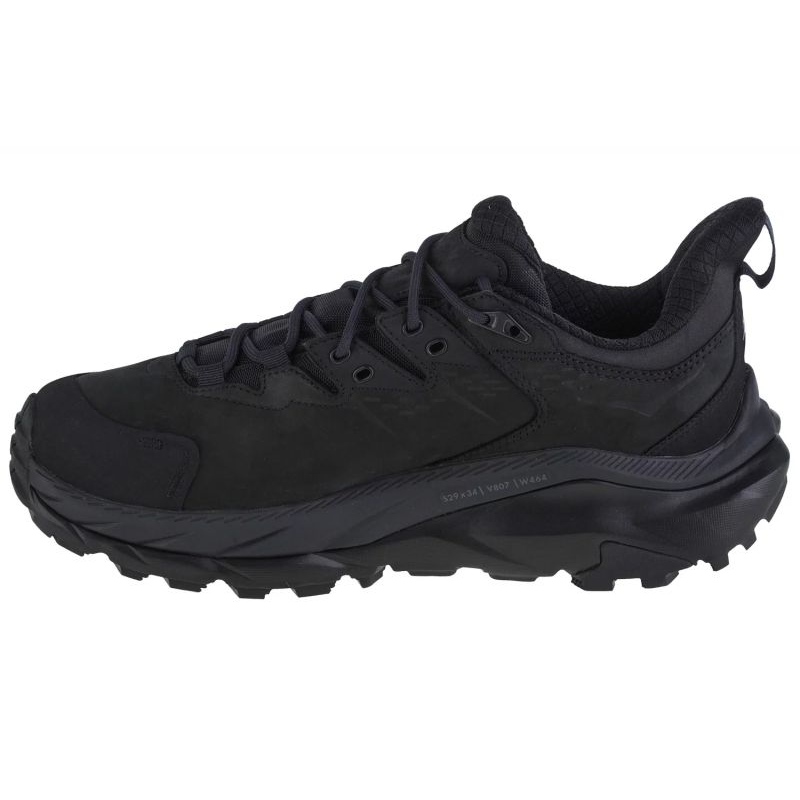 Hoka Kaha 2 BOW GTX 1123190 BBLC Sapatos disponíveis em uma cor preta elegante com o logotipo de um fabricante característico, mistura-se perfeitamente com qualquer estilização ao ar livre. Sua aparência minimalista, mas moderna, os torna não apenas funcionais, mas também estéticos.