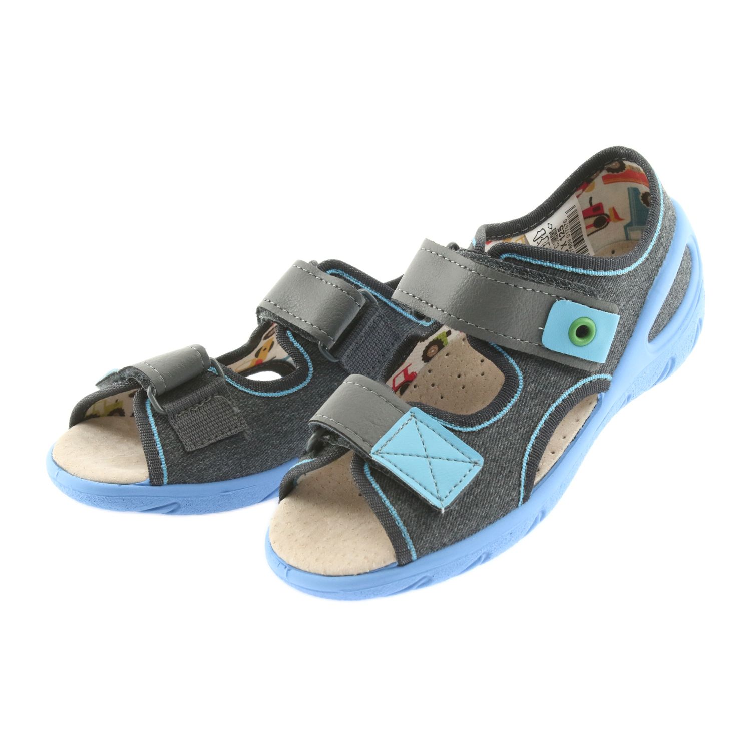 As sandálias infantis Befado 065X125 nas cores azul e cinza são a escolha perfeita para todo pequeno explorador. Proporcionam conforto e apoio durante a diversão sem fim e, graças à utilização de materiais de alta qualidade, cada passo será cheio de alegria.