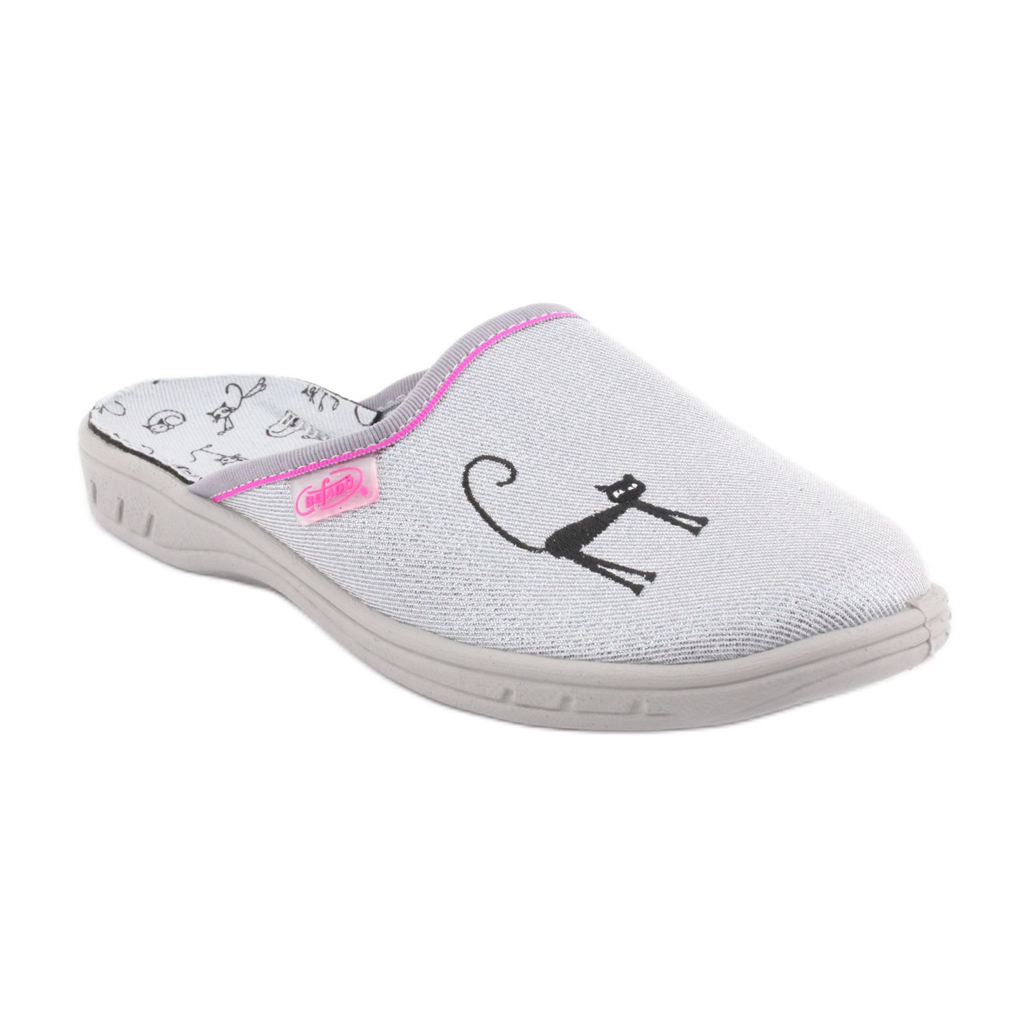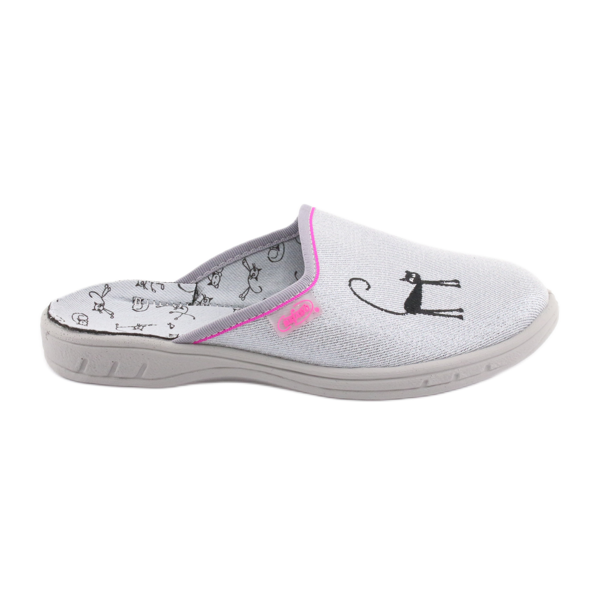 Apresentamos lindos chinelos Befado 707Y398 numa elegante cor cinza que vão deliciar todas as meninas! Estes chinelos únicos, decorados com encantadoras aplicações de gatos pretos, são a escolha perfeita para o jardim de infância, a escola e todos os dias em casa.