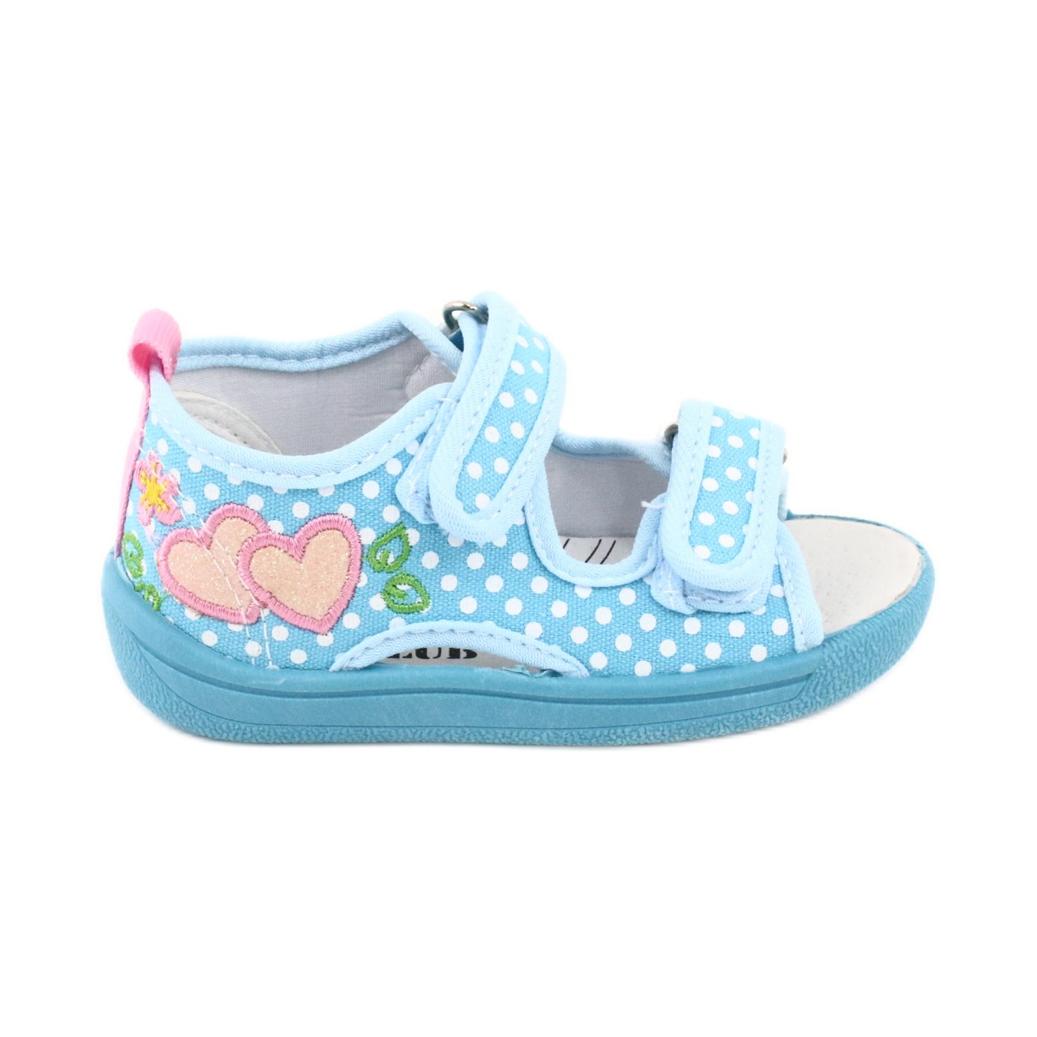 Os chinelos são equipados com sola flexível de borracha azul, que proporciona excelente aderência e estabilidade, o que é extremamente importante nas brincadeiras no jardim de infância, em casa ou no quintal. Dois fechos de velcro permitem ajustar facilmente a largura da parte superior, o que significa que cada criança pode ajustar o calçado às suas necessidades.