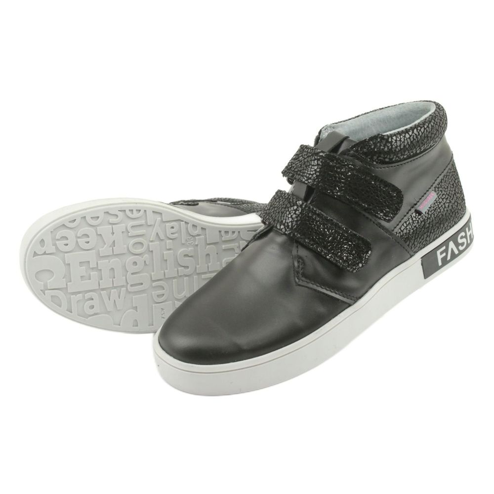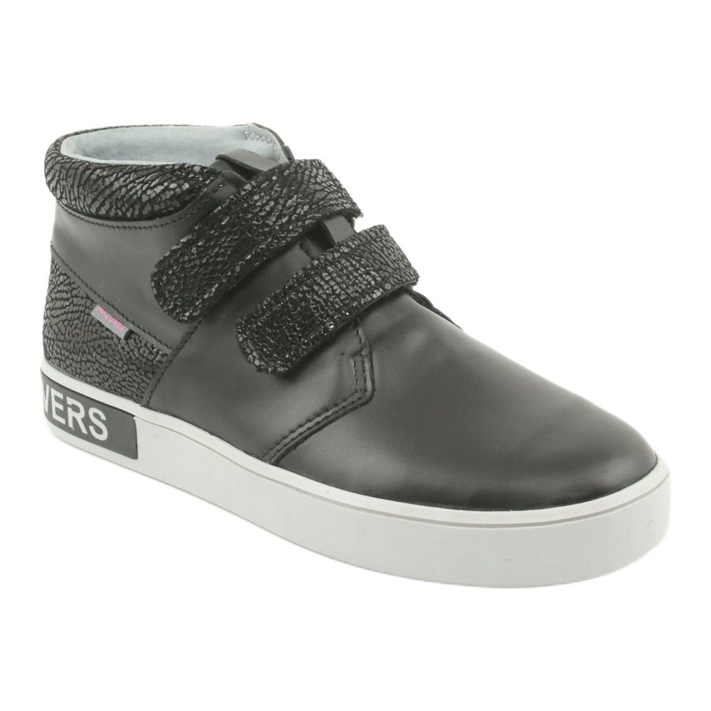 Mazurek - sapatos infantis de couro para velcro (preto)