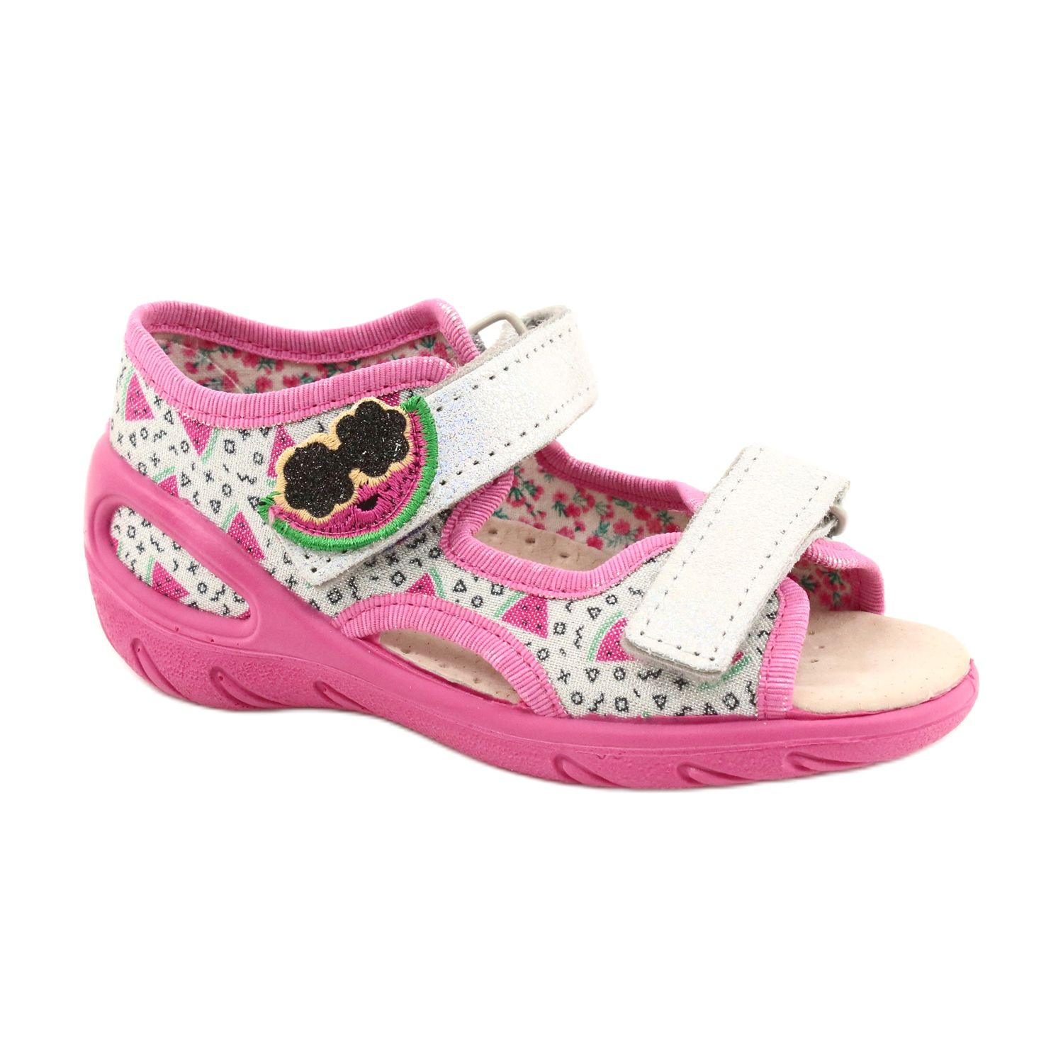 Sandálias infantis de Befado 065p148 - rosa / prata / cinza