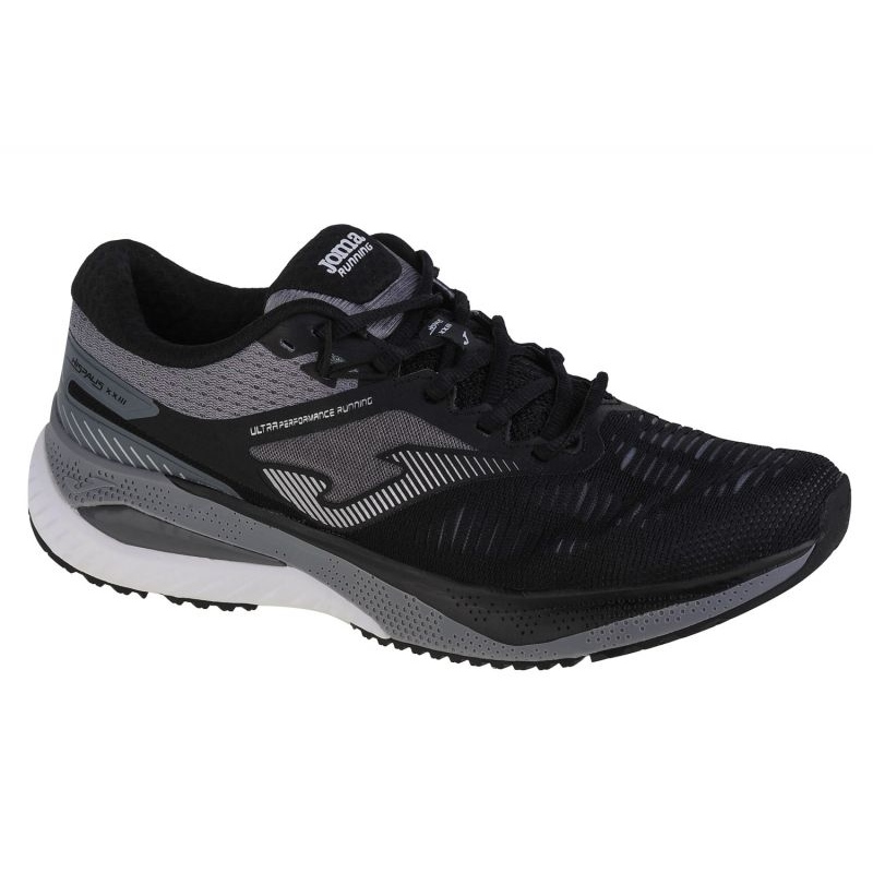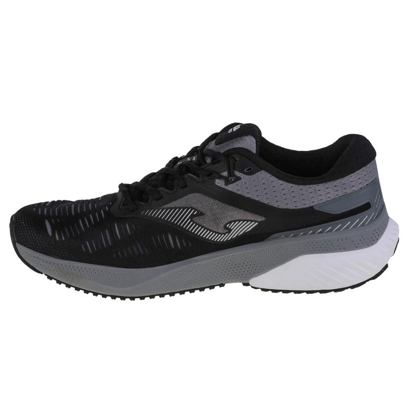 Joma R.Hispalis Men 2201 Sapatos - sapatos de treinamento sólidos e universais para homens que combinam o conforto do uso diário com a funcionalidade durante a corrida. O corte baixo e de renda em cores pretas elegantes com detalhes cinza faz com que o modelo funcione bem durante o treinamento e na rua.