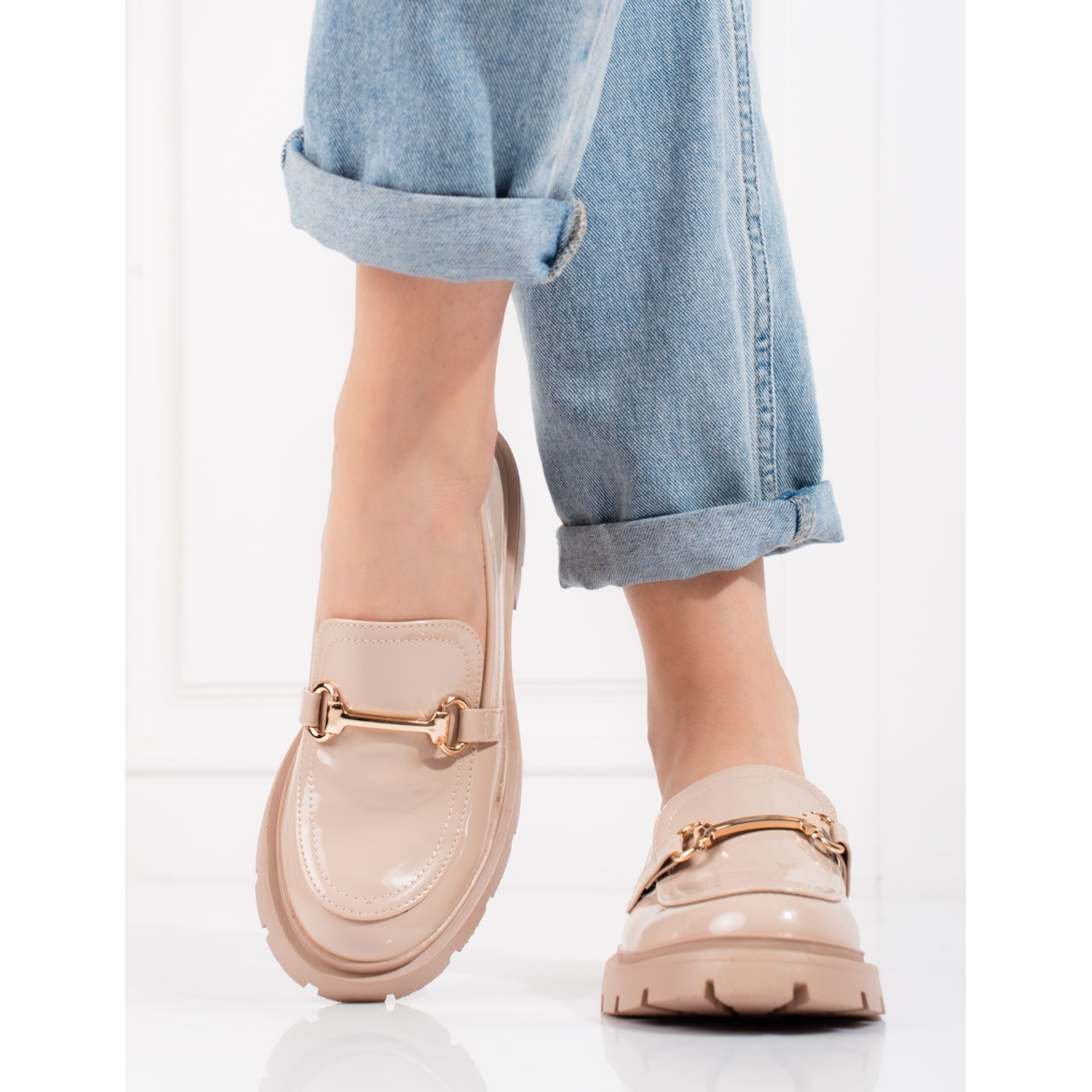 Os sapatos bege de couro envernizado da Shelovet são a escolha perfeita para mulheres que valorizam elegância e conforto no dia a dia. Estes mocassins clássicos funcionam bem tanto em estilos casuais como mais formais, tornando-os um elemento insubstituível em qualquer guarda-roupa de primavera e verão.