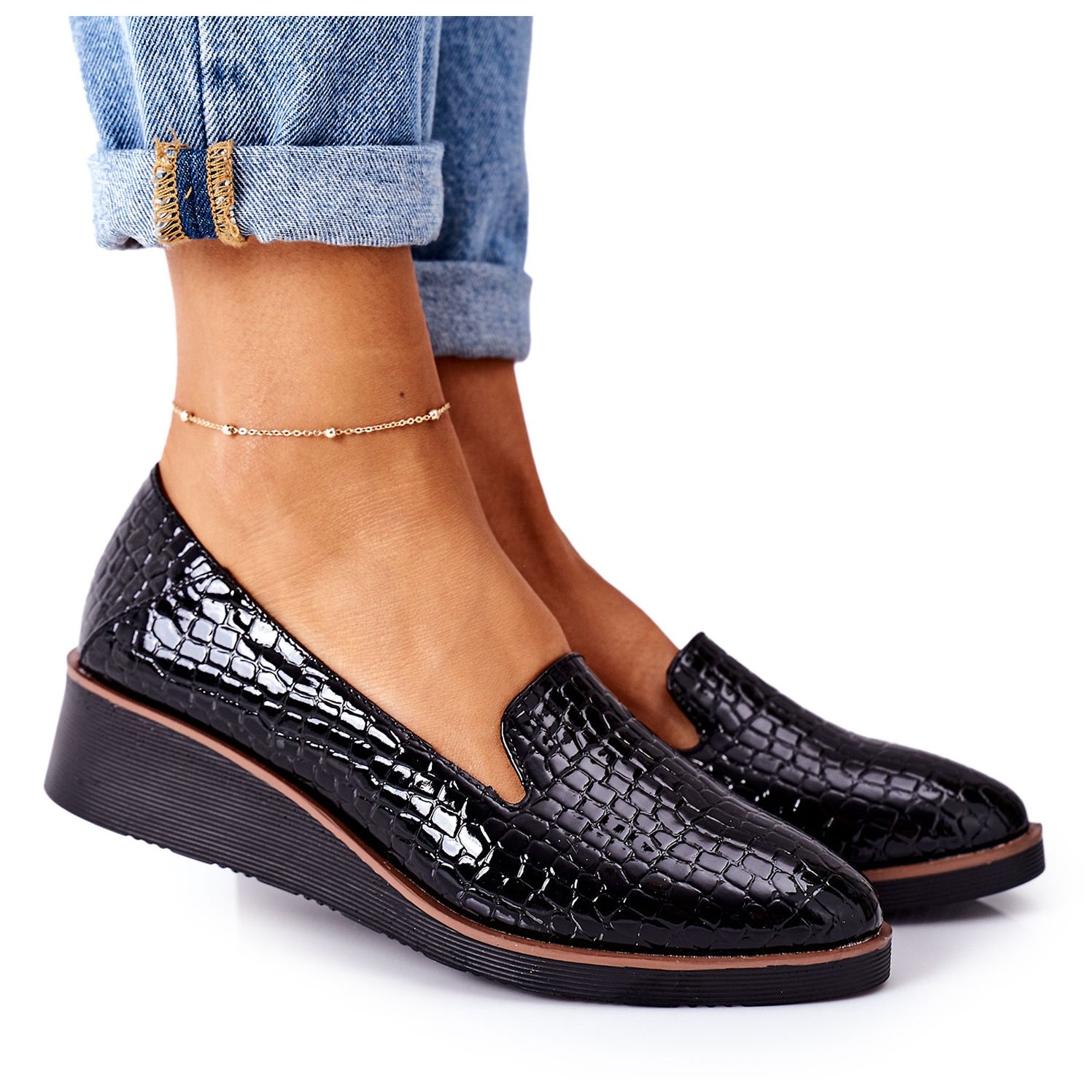 Apresentamos os elegantes sapatos de cunha VINCEZA 10675 na clássica cor preta, que complementam perfeitamente qualquer estilo. Confeccionados em couro ecológico envernizado, esses sapatos combinam elegância e design moderno, e cada detalhe foi cuidadosamente pensado pensando no seu conforto.