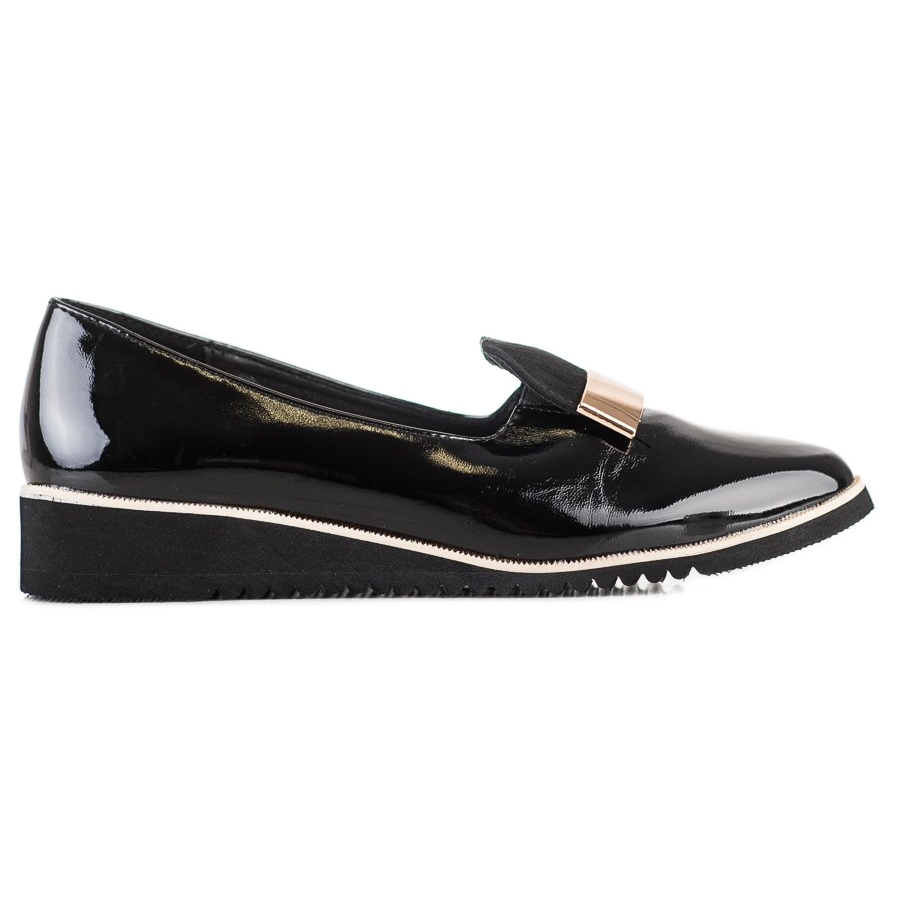Descubra o conforto leve e a elegância que os sapatos Goodin oferecem na cor preta profunda. Estes sapatos estilosos são a escolha perfeita para mulheres que valorizam conforto e aparência moderna. Feitos com materiais de alta qualidade, incluindo couro ecológico envernizado, os sapatos se diferenciam por sutis decorações douradas que agregam elegância e caráter.