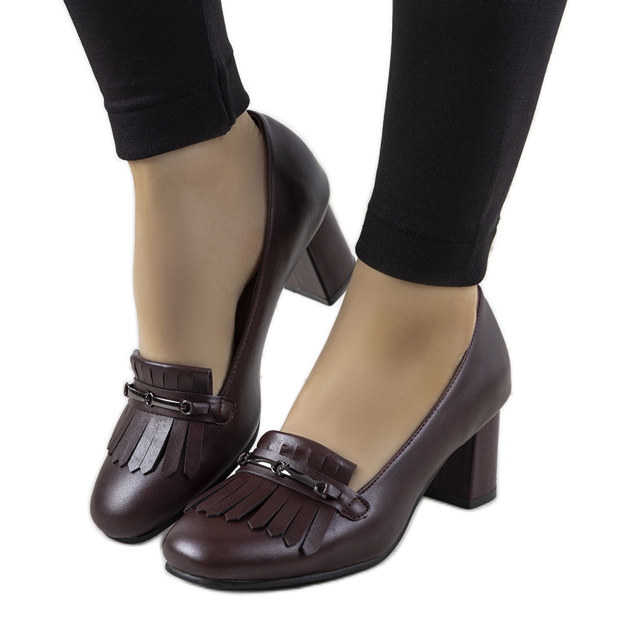 Descubra elegância e conforto com sapatos de salto alto vermelhos Alicea bordô. Estes sapatos estilosos, inspirados nos mocassins clássicos, são confeccionados em couro ecológico de alta qualidade, o que os torna não só estéticos, mas também ecologicamente corretos.