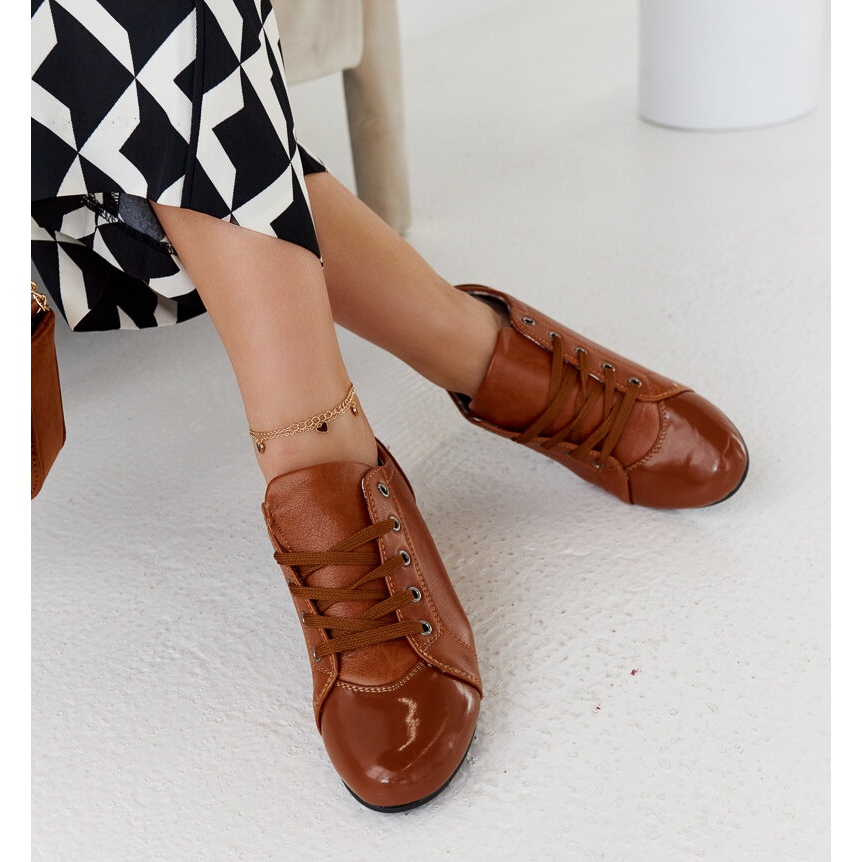 Apresentamos sapatos marrons com um desfile envernizado - a escolha perfeita para mulheres que desejam combinar elegância com um estilo casual. Esses belos sapatos, distinguidos pela pele ecológica, deleitam não apenas com sua aparência, mas também com a funcionalidade.