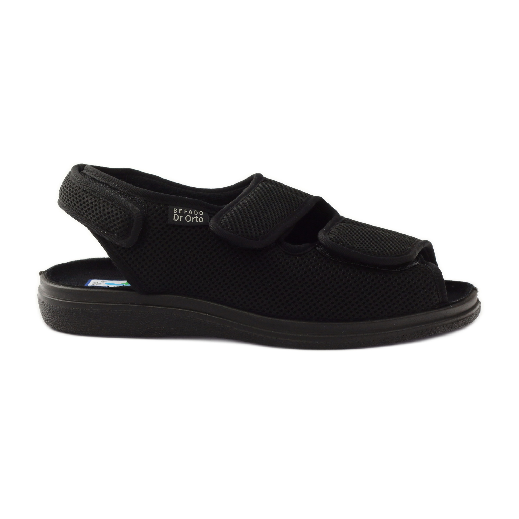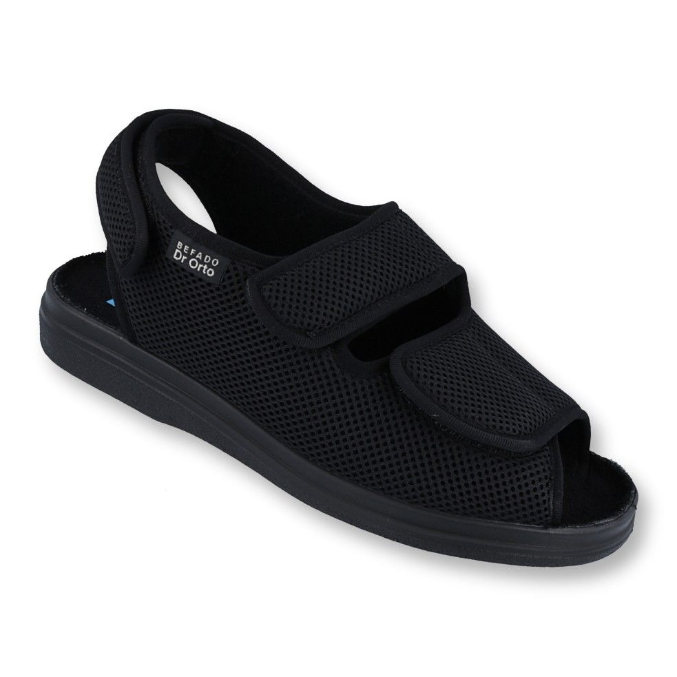 Os sapatos masculinos Befado 733M007 na cor preta são a escolha perfeita para os dias de verão. Perfeitos como sapatos sociais, também podem ser usados como chinelos confortáveis em casa. Fabricado com tecidos macios de alta qualidade, é uma solução para pessoas com pés sensíveis, inclusive aqueles que sofrem de problemas nos pés diabéticos.
