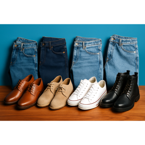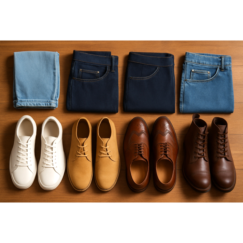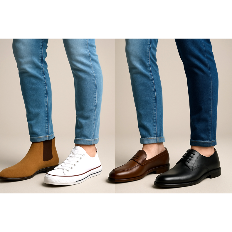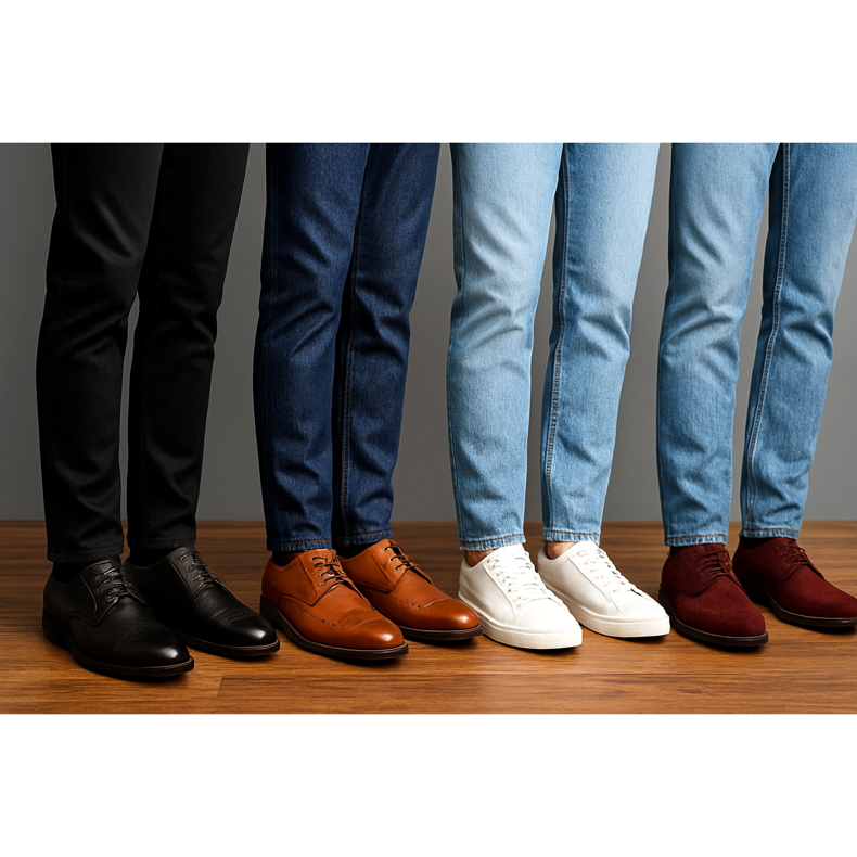 Um guia completo para selecionar calçados masculinos para diversos estilos de jeans. Aprenda as regras de estilo, do slim ao baggy e descubra as combinações perfeitas.