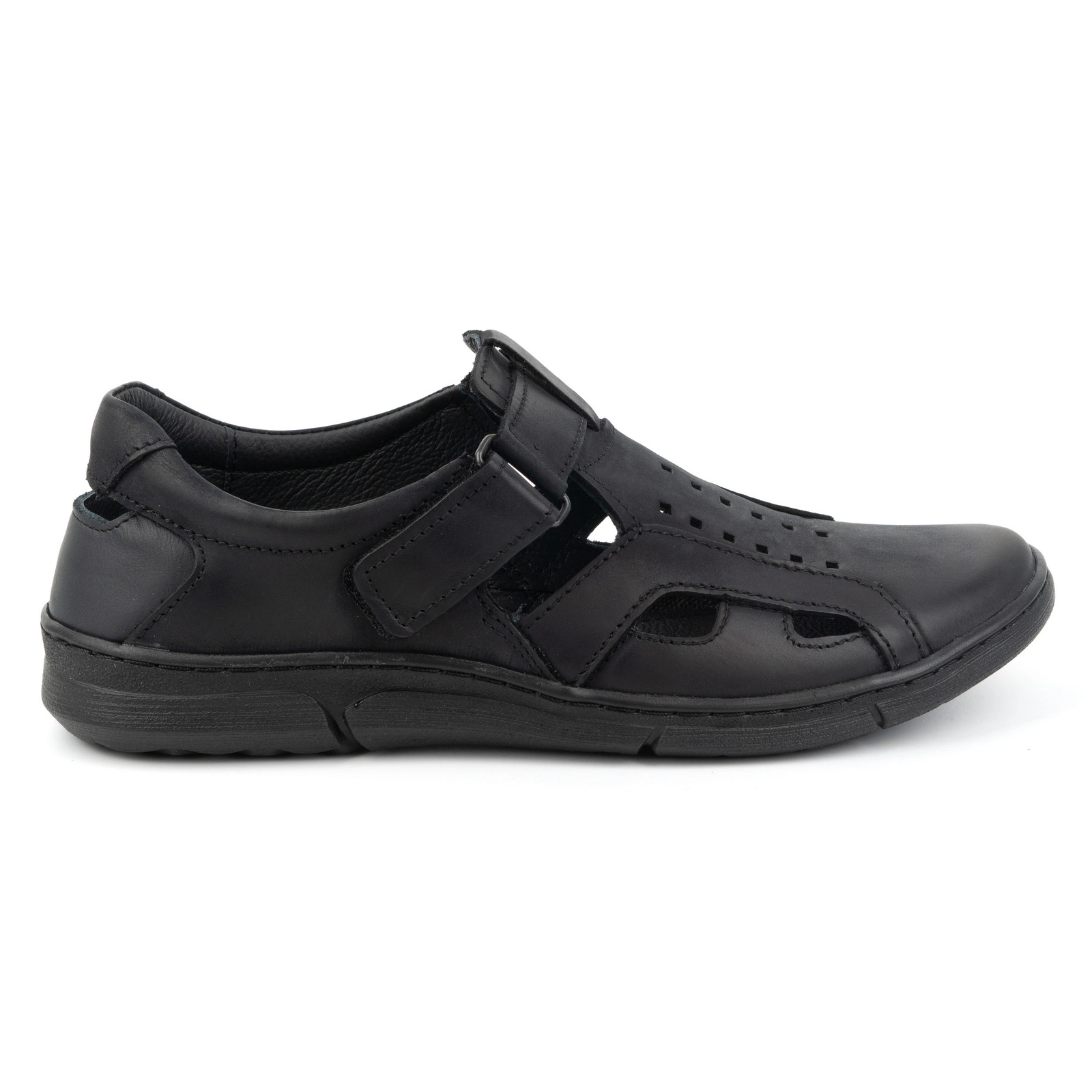 Detalhes: Olivier Sapatos masculinos de couro, arejados, slip-on com velcro, 312KZ, pretos