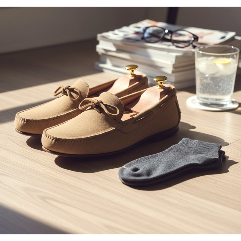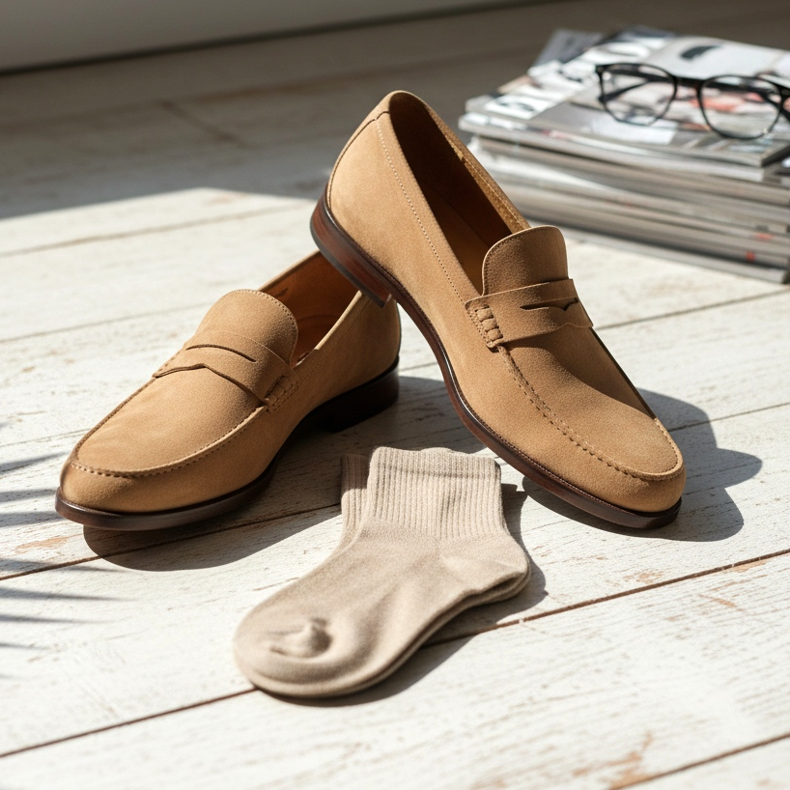 Sandálias no escritório são uma gafe, mas botas cheias são muito quentes? Aconselhamos qual calçado masculino escolher para trabalhar no verão. Mocassins, camurça e meias invisíveis são seus aliados!