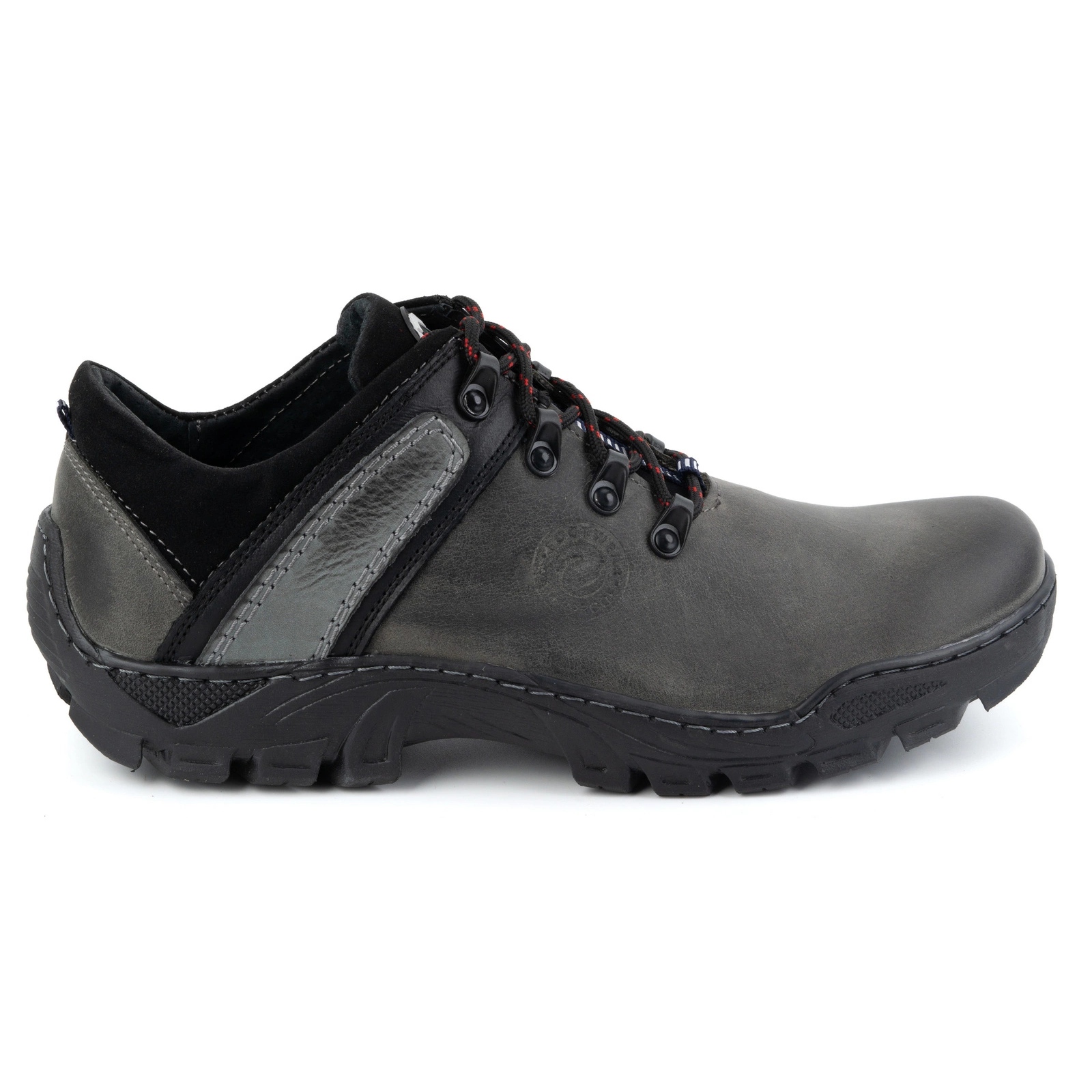 Os sapatos de trekking masculinos de Olivier 311GT são a escolha perfeita para todos os amantes de atividades ao ar livre. Seu design moderno e cinza funcionará durante as caminhadas nas montanhas e no uso diário. Graças ao uso de couro natural de alta qualidade, os sapatos não são apenas duráveis, mas também confortáveis - por dentro e por dentro.