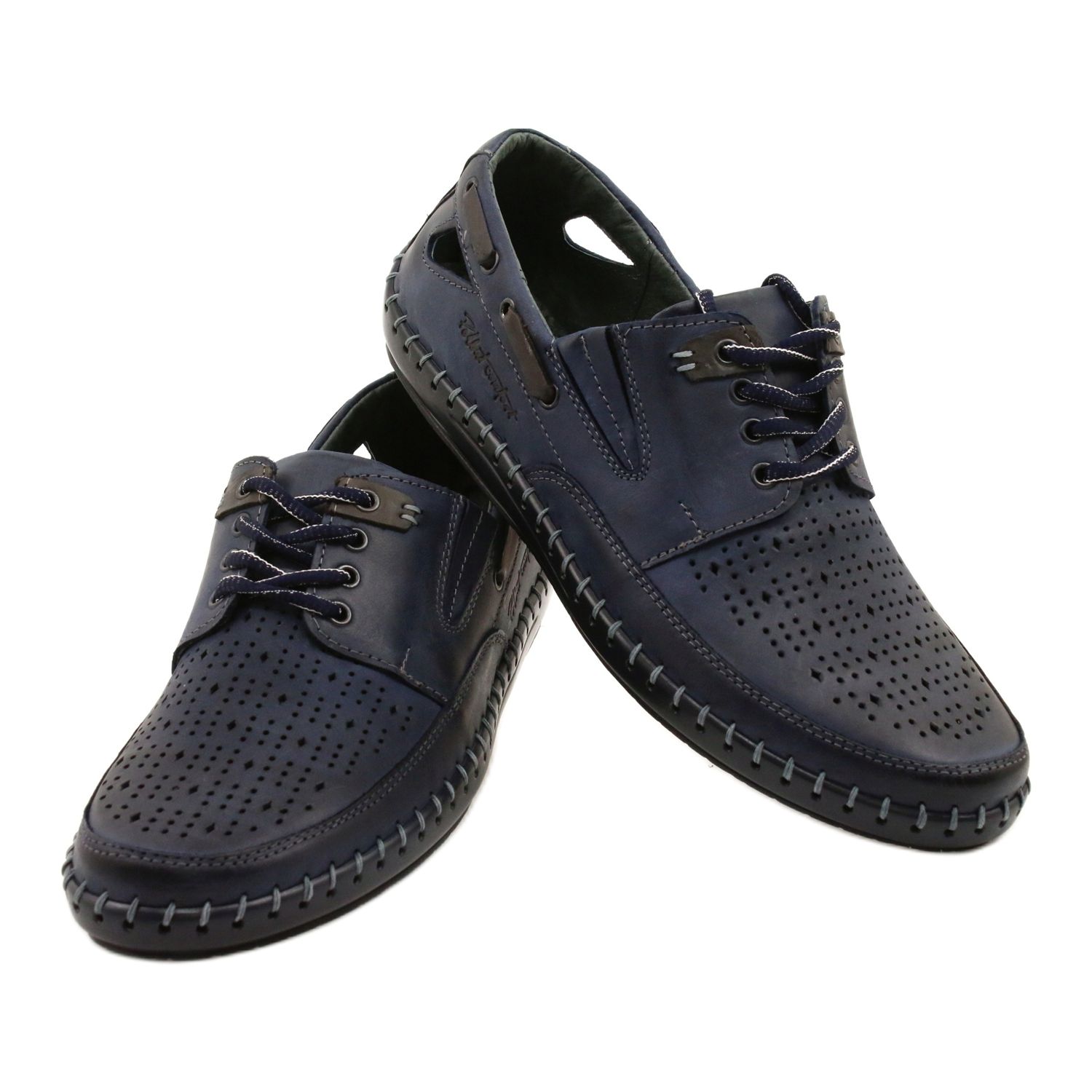 Apresentamos elegantes sapatos masculinos, mocassins perfurados Polbut J69L em azul marinho, que são a escolha perfeita para os dias de verão. Feitos de couro natural de alta qualidade, esses sapatos proporcionam não apenas um visual elegante, mas também um conforto de uso excepcional graças às propriedades respiráveis do material.
