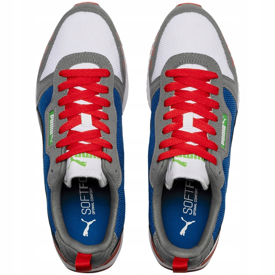 Detalhes: Sapatos masculinos Puma R78 branco-azul-vermelho-preto 373117 10 azul marinho cinza