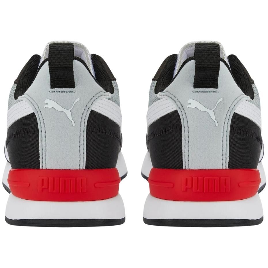 Detalhes: Sapatos masculinos Puma R78 pretos e cinza 373117 66 branco