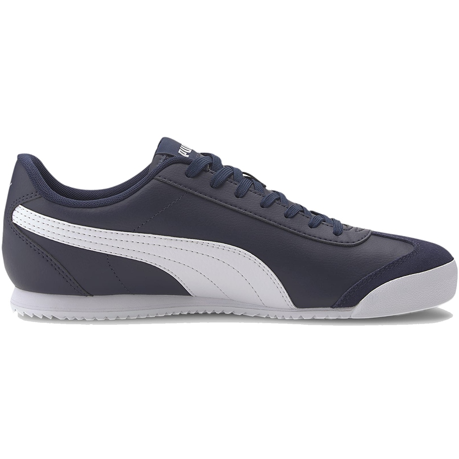 Men's Puma Turino Navy-White 371113 calçados da cidade de 04 e confortáveis e confortáveis que funcionarão diariamente. O clássico e baixo corte nas cores da marinha universal e branca combina um personagem esportivo com um visual da cidade.