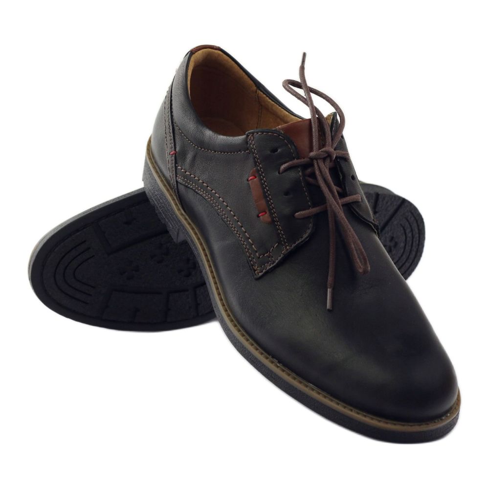Detalhes: Sapatos masculinos Riko amarrados 823 preto marrom