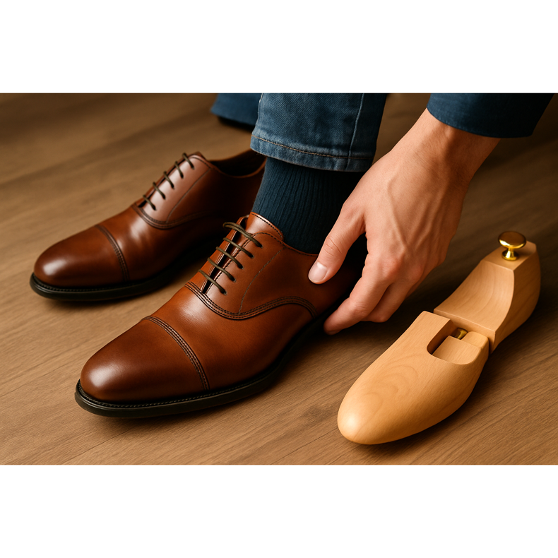 Os sapatos de boa qualidade são um investimento por anos. O método Goodyear Welt é um padrão dourado - a sola é costurada, não colada, o que permite a substituição. Blake Stitch é um método mais barato, mas ainda bom. Evite sapatos completamente colados. A pele deve ser macia, elástica, sem rachaduras. Verifique a igualdade de costuras e a qualidade do acabamento. A sola de couro é elegante, borracha mais prática. Um bom sapato tem uma tração de couro e um salto reforçado.
