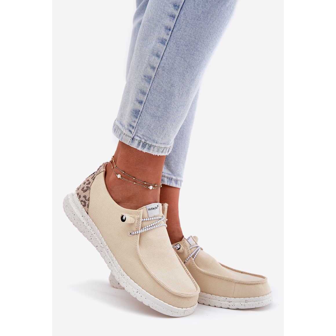 Descubra o conforto e o estilo em um dos tecidos femininos leves McKeylor 96116 em uma sombra bege. Esses sapatos deslizantes com elásticos imitando cadarços são a solução perfeita para mulheres que valorizam a funcionalidade e a aparência da moda.