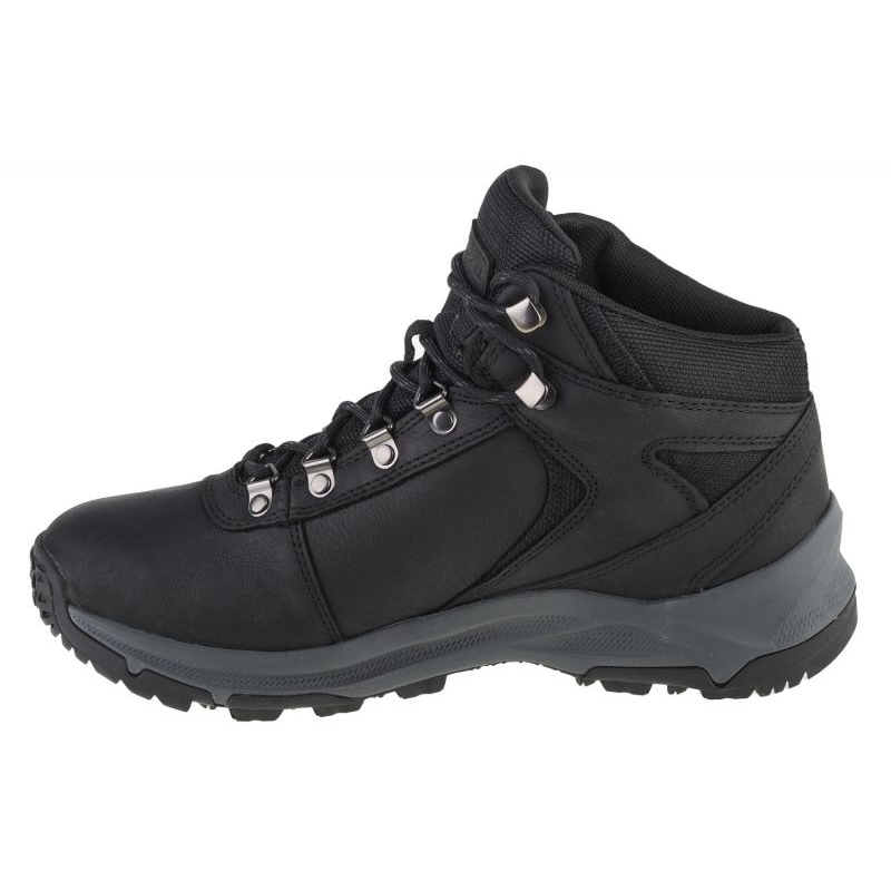 Sapatos Merrell Erie Mid LTR WP J500151 - Trekking preto em uma edição preta, combinando estilo clássico com funcionalidade na trilha e em condições urbanas. O corte alto e de renda garante que o cubo estável e uma sola grossa de borracha com um piso claro garante adesão em uma superfície variada.