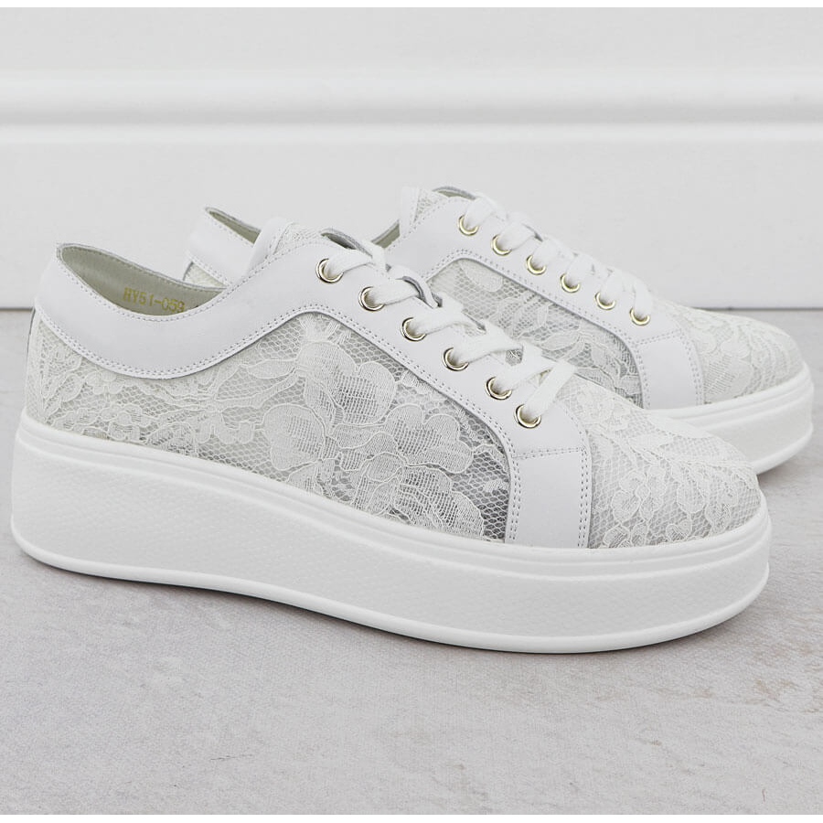 Detalhes: S.Barski Sapatos na plataforma Białe S. Barski Lace Hy51-059 branco