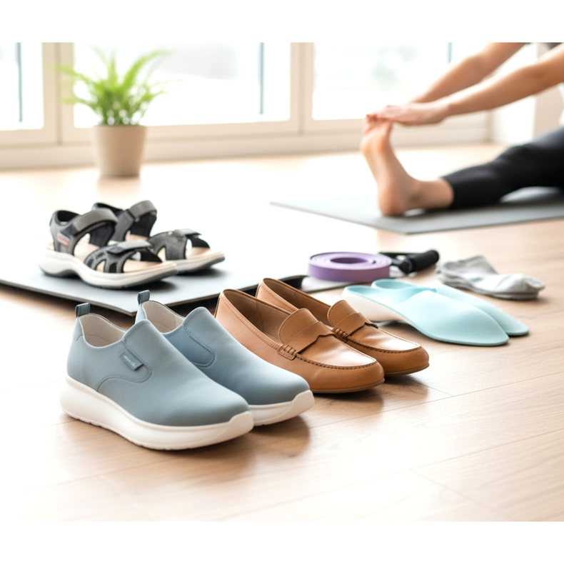 Ao escolher calçados para pés chatos, observe as seguintes características: 1) Suporte de arco – Os calçados devem ter um arco definido que sustente a curva natural do pé. 2) Calcanhar rígido – evita que o pé se incline para fora, o que pode piorar a dor. 3) Amortecimento – absorve choques e reduz a pressão nos pés. 4) Base larga – dispersa o peso uniformemente. 5) Material respirável - evita suor excessivo e odores desagradáveis. Além disso, evite sapatos muito flexíveis ou macios – eles podem não fornecer o suporte necessário.