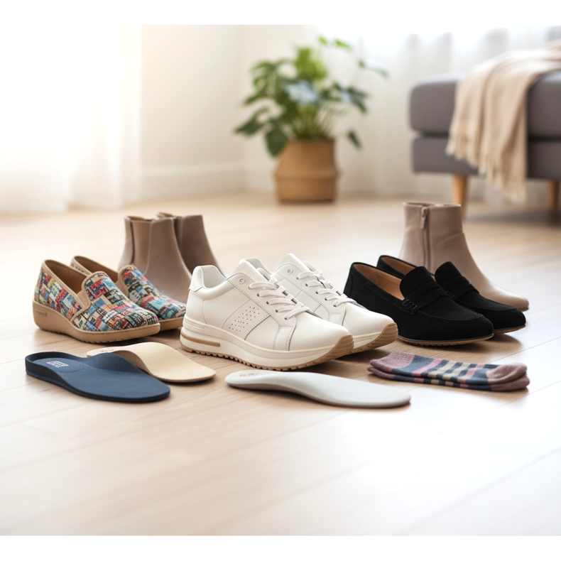 Para o uso diário, tênis ortopédicos ou tênis são ideais. Marcas como New Balance e ASICS são especializadas em calçados que suportam diversos tipos de pés. Modelee pode ser elegante e funcional. Se precisar de opções mais elegantes, existem sapatos ortopédicos e botins que não ficam menos bonitos que os sapatos convencionais. Para ocasiões mais formais, os saltos ortopédicos em bloco ou plataforma podem ser um bom compromisso entre estilo e suporte.