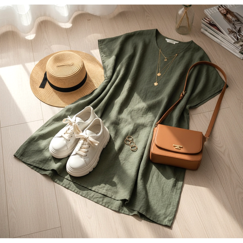 Se quiser criar um estilo mais casual, você pode combinar um vestido oversize com tênis elegantes. Este conjunto é perfeito para o uso diário, proporcionando conforto e um visual moderno.