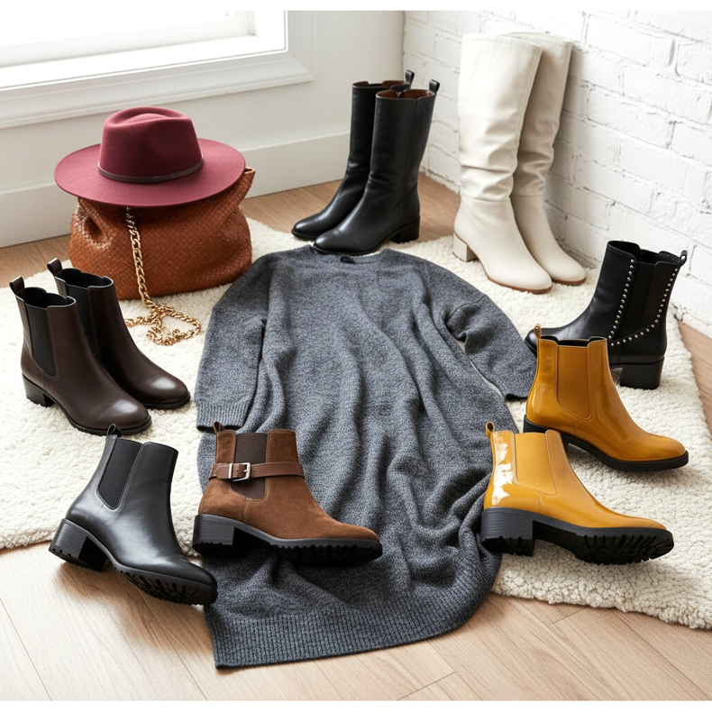 No inverno, quando você escolhe um vestido oversize mais grosso, sapatos com isolamento funcionam melhor. Botas isoladas ou com pele proporcionam proteção adequada contra o gelo e ao mesmo tempo parecem elegantes. Vale a pena escolher modelos com solado antiderrapante, que garantirão segurança em superfícies geladas.