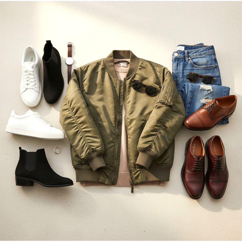 Por que vale a pena escolher o calçado certo para uma jaqueta bomber?