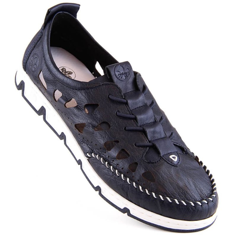 Detalhes: Sapatos perfurados de couro Rieker W RKR652, azul marinho