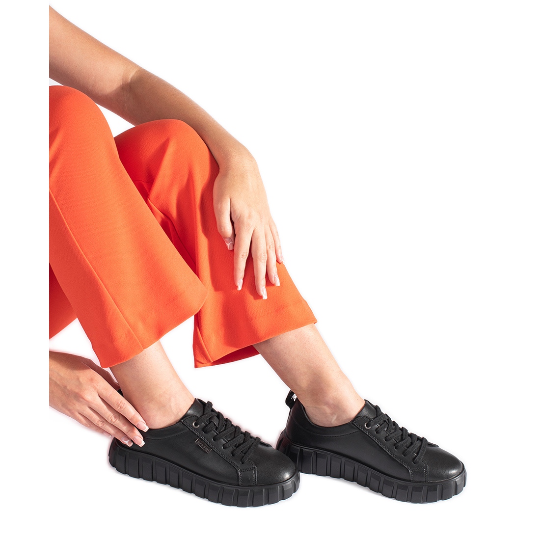 Esses sapatos têm um estilo esportivo que se encaixa perfeitamente na vida urbana cotidiana. Graças à cor neutra e preta, você pode combiná -los facilmente com várias estilizações - de casual a mais elegante.